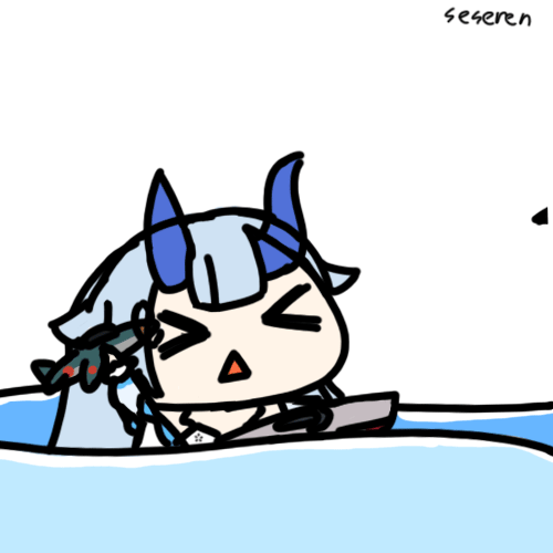 >_< 1girl aircraft airplane animated animated_gif azur_lane fighter_jet i-13_(azur_lane) long_hair lowres military military_vehicle ocean open_mouth partially_submerged seseren triangle_mouth