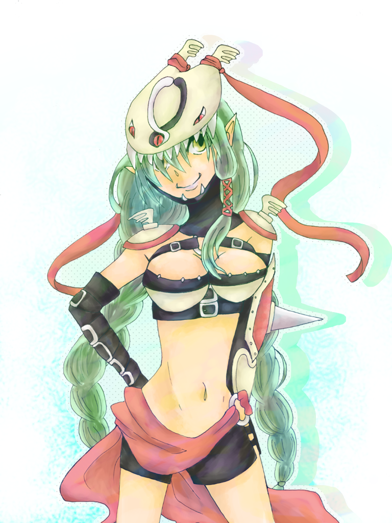 1girl digimon female_focus long_hair mervamon snake solo