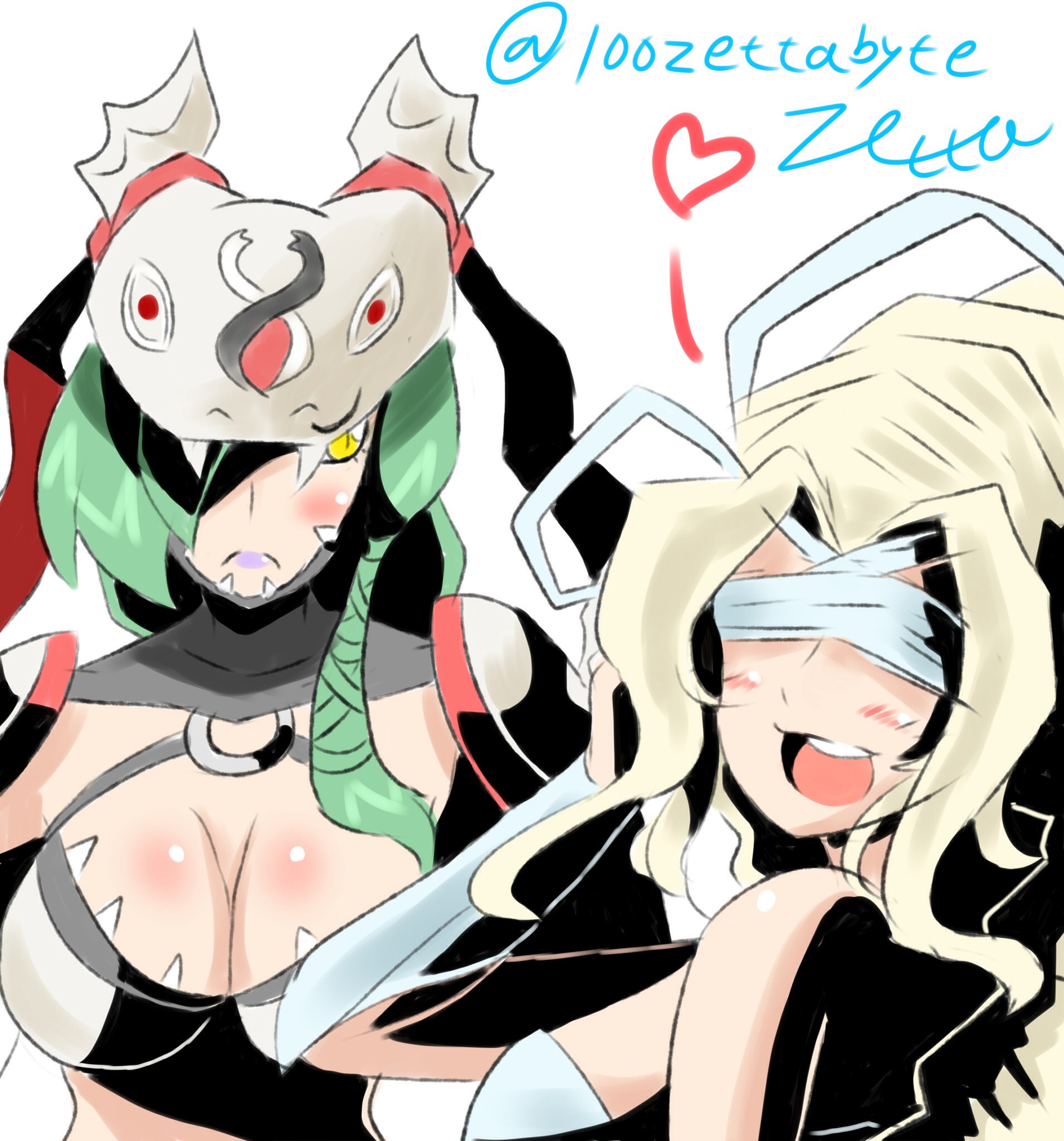 2girls blindfold digimon highres long_hair mervamon multiple_girls smile venusmon