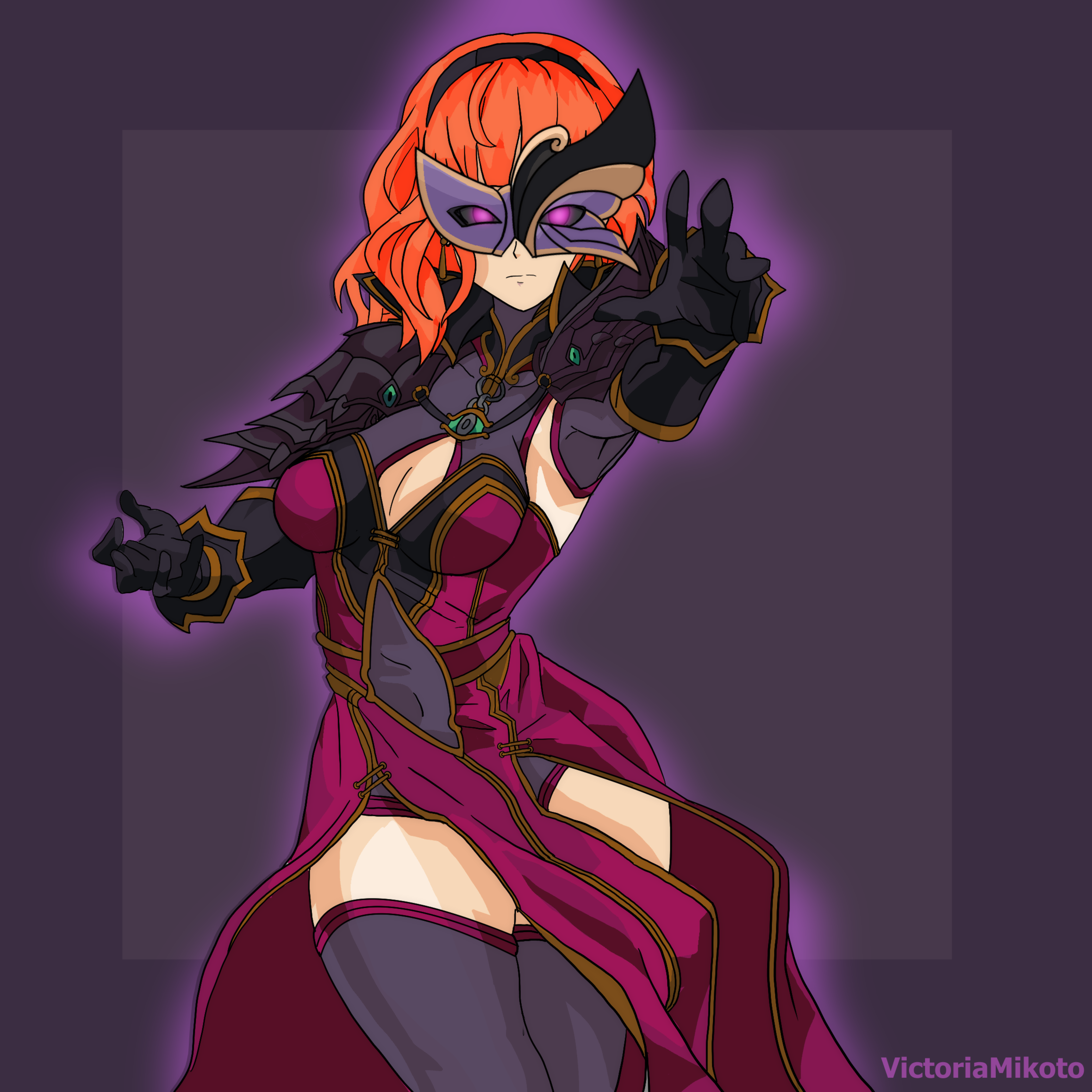 1girl absurdres aura celica_(fire_emblem) corruption fire_emblem fire_emblem_echoes:_shadows_of_valentia gloves glowing glowing_eyes highres leggings mask mind_control nintendo red_hair self-upload victoria_mikoto witch_(fire_emblem)