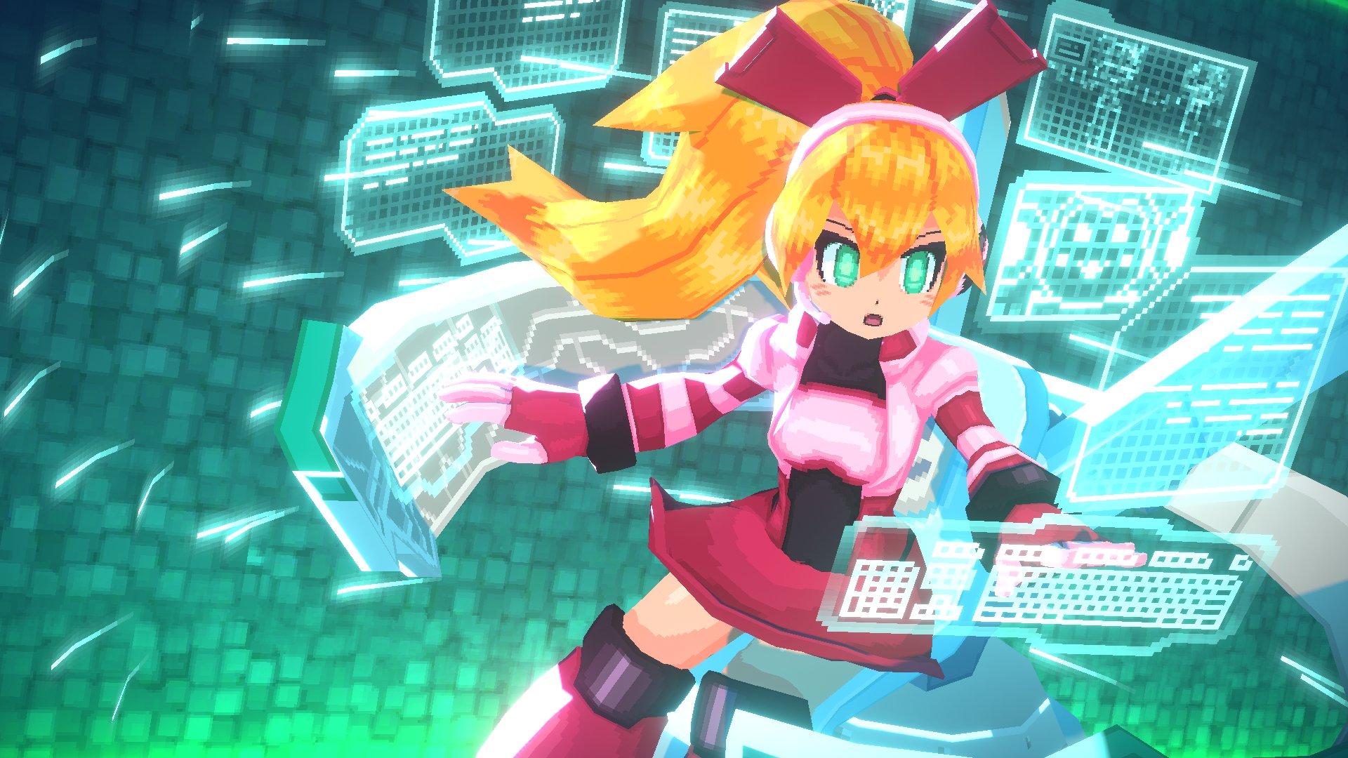 1girl blonde_hair call_(mighty_no._9) female_focus highres long_hair mighty_no._9 skirt solo