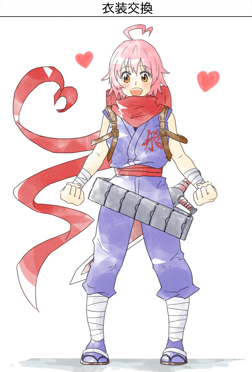 1girl aino_heart arcana_heart brown_eyes capcom cosplay heart highres legs ninja open_mouth pants scarf short_hair smile solo spiked_hair strider_(game) strider_hiryuu thighs