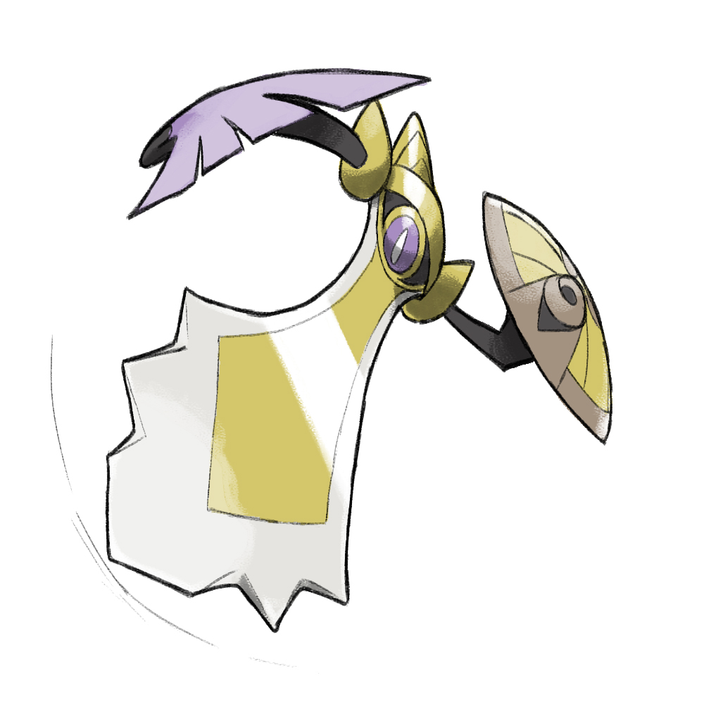 aegislash black_sclera blacknirrow bright_pupils colored_sclera commentary english_commentary gen_6_pokemon holding holding_shield nintendo no_humans one-eyed pokemon pokemon_(creature) purple_eyes shield simple_background slit_pupils solo sword weapon white_background white_pupils