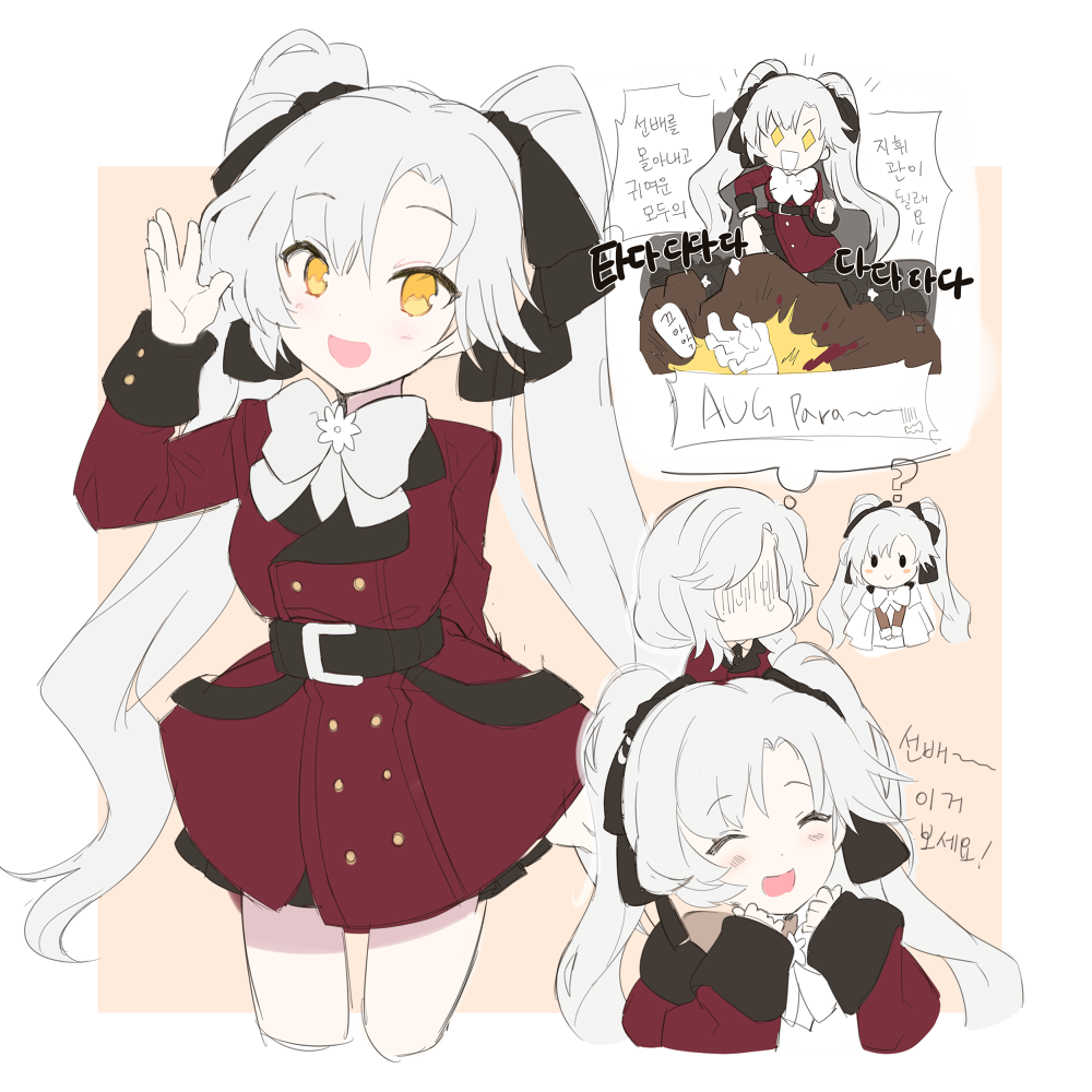 2girls aug_para_(girls'_frontline) closed_eyes female_commander_(girls'_frontline) girls'_frontline jin2 korean_text multiple_girls smile