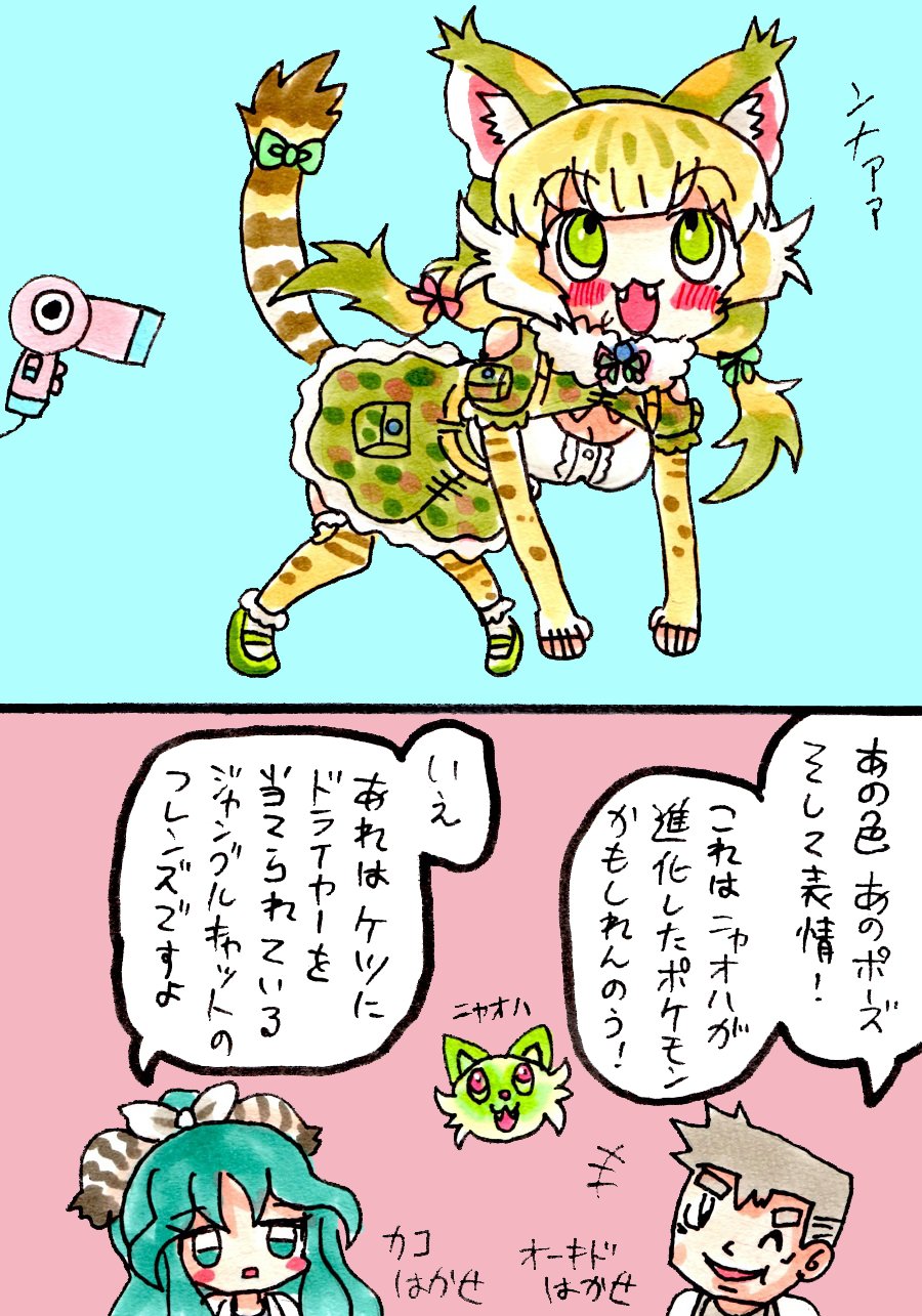 animal_ears cat_ears cat_girl grey_hair highres jungle_cat_(kemono_friends) kako_(kemono_friends) kemono_friends kemono_friends_v_project long_hair multicolored_hair nejirome nintendo parody pokemon virtual_youtuber