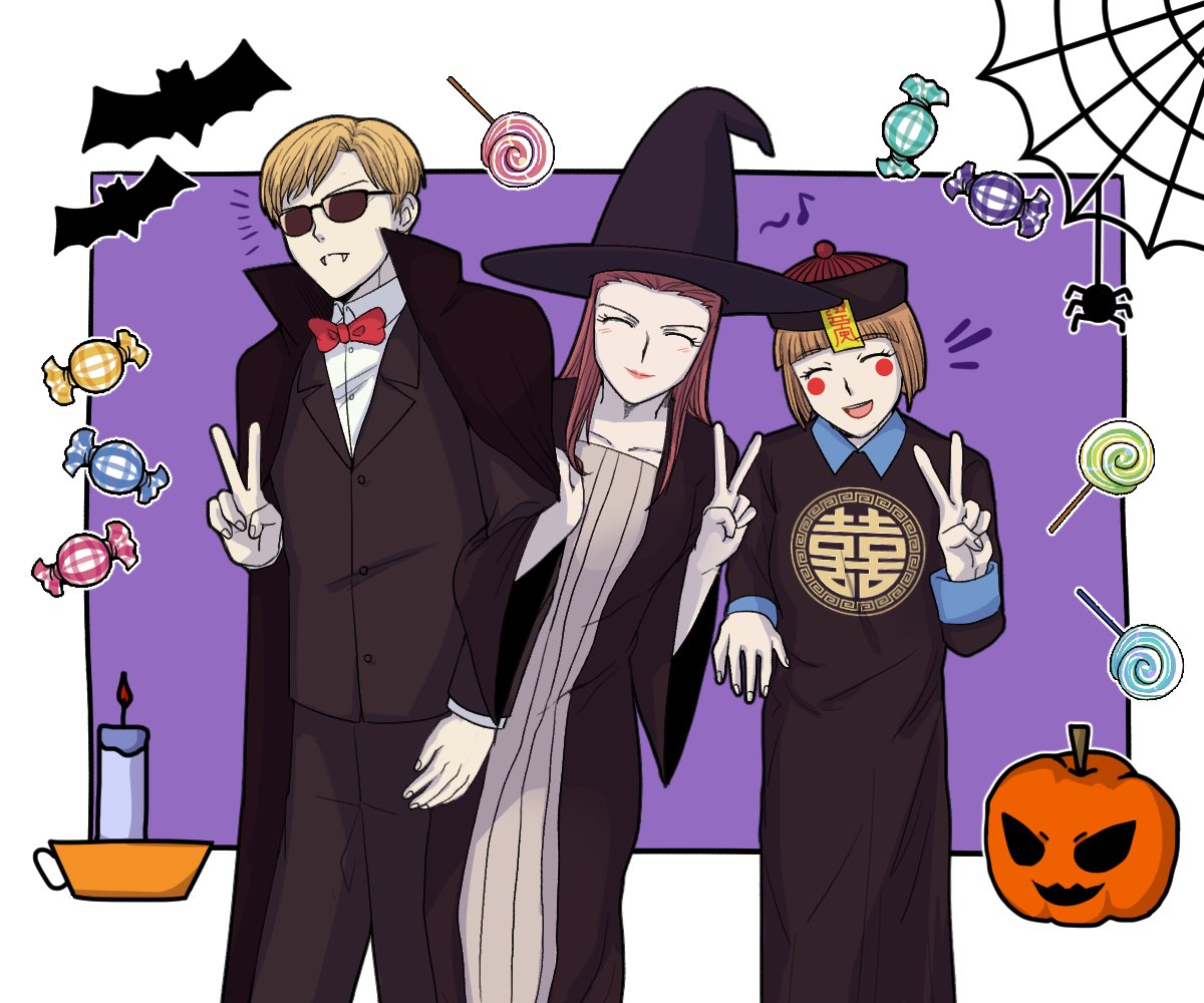 1boy 2girls digimon halloween halloween_costume long_hair multiple_girls onodera_megumi ootori_reika short_hair yamaki_mitsuo