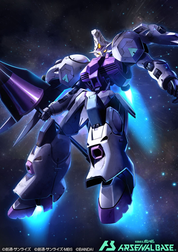 glowing glowing_eyes gundam gundam_arsenal_base gundam_kimaris gundam_tekketsu_no_orphans kenko_(a143016) lance mecha no_humans official_art polearm robot space thrusters v-fin weapon