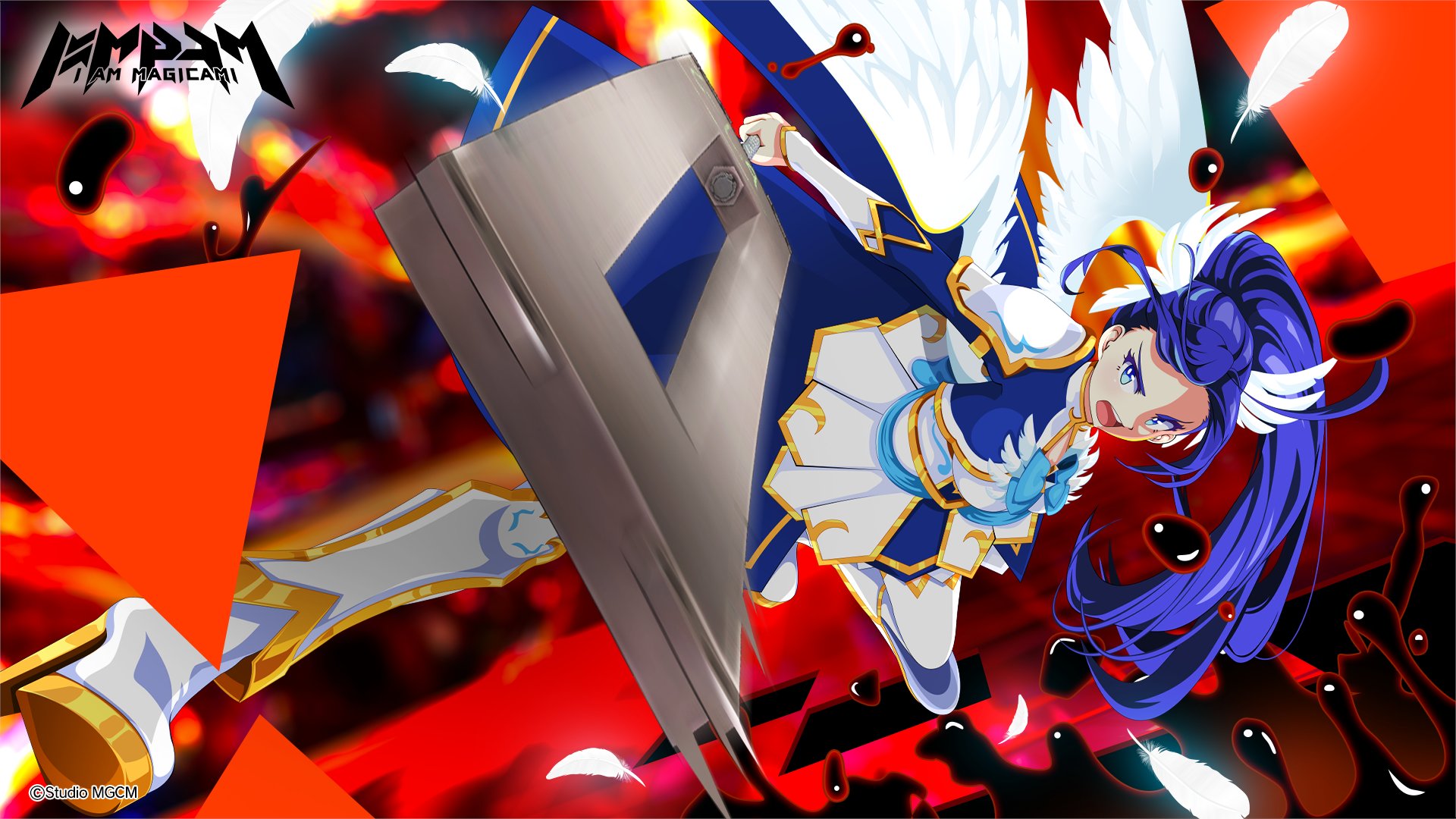 1girl artist_request highres holding holding_sword holding_weapon looking_at_viewer magical_girl magicami official_art official_wallpaper ohtori_ao sword weapon