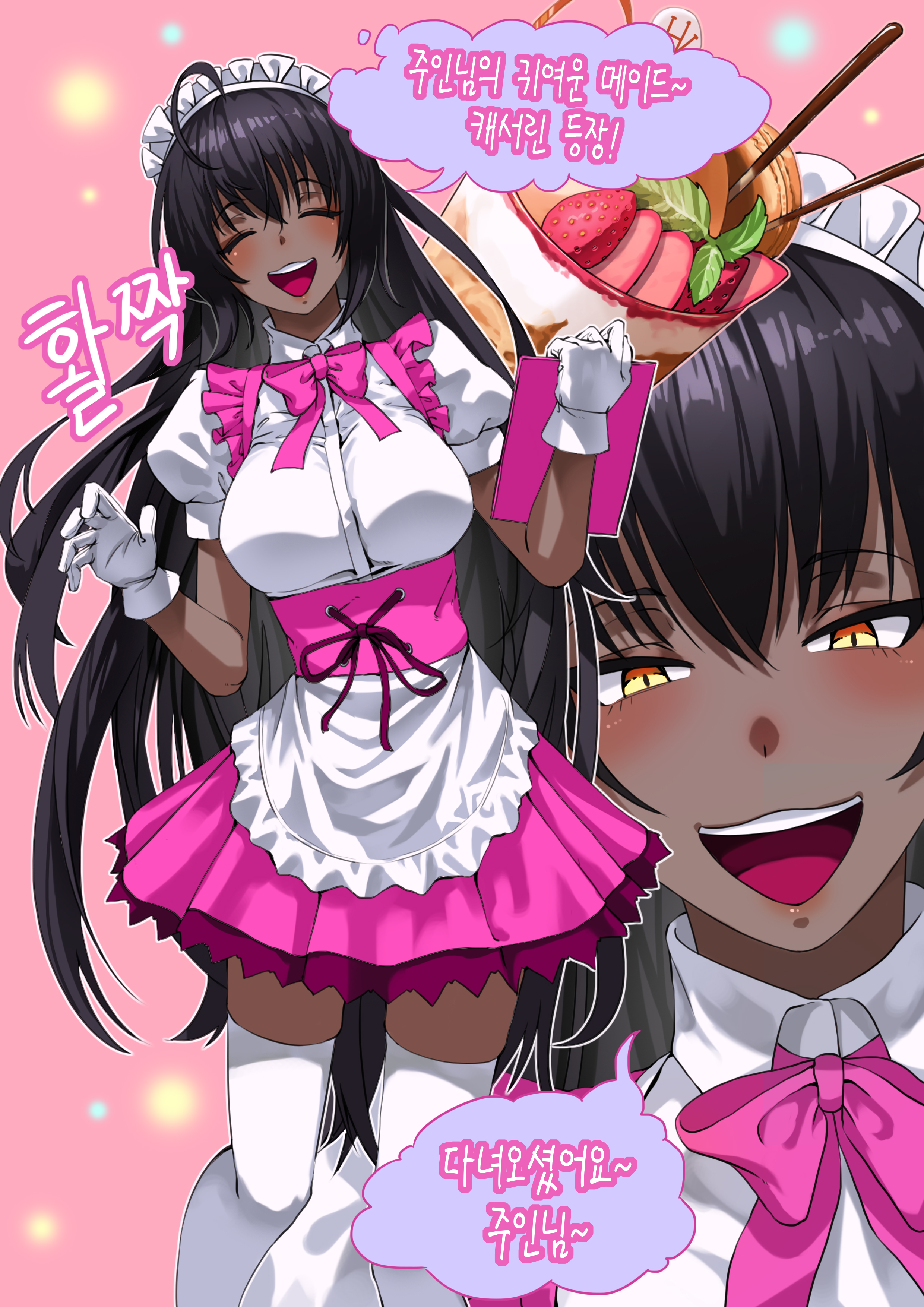 absurdres alfie_(tmdals7645) alternate_costume blue_archive dark-skinned_female dark_skin highres karin_(blue_archive) korean_text maid smile tagme