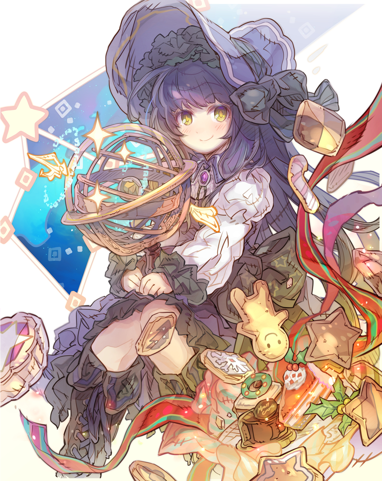 1girl black_boots black_dress black_hair boots closed_mouth commentary_request commission dress haku_(sabosoda) highres juliet_sleeves knee_boots knees_together_feet_apart lace-up_boots long_hair long_sleeves looking_at_viewer original own_hands_together puffy_sleeves shirt skeb_commission sleeveless sleeveless_dress sleeves_past_wrists smile solo star_(symbol) very_long_hair white_background white_shirt yellow_eyes