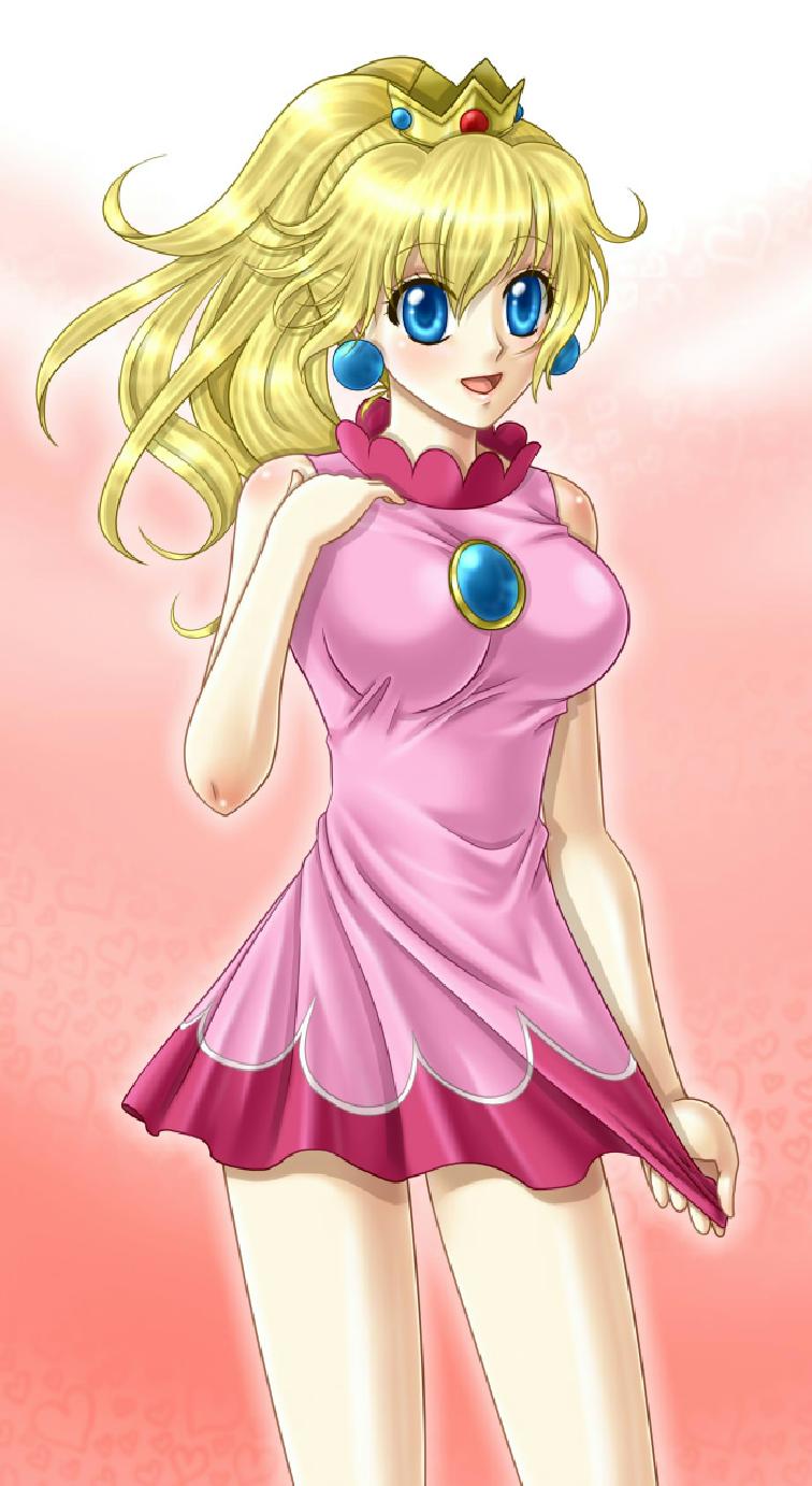 1girl ball bare_arms bare_legs bare_shoulders blonde_hair blue_eyes border brooch crown day dress earrings floating_hair full_body grass hand_up high_ponytail highres holding jewelry lips long_hair looking_up mario_(series) mario_tennis nintendo non-web_source outdoors parted_lips pink_dress ponytail princess_peach racket shoes short_dress sleeveless sleeveless_dress solo standing tennis_dress yuino_(fancy_party)