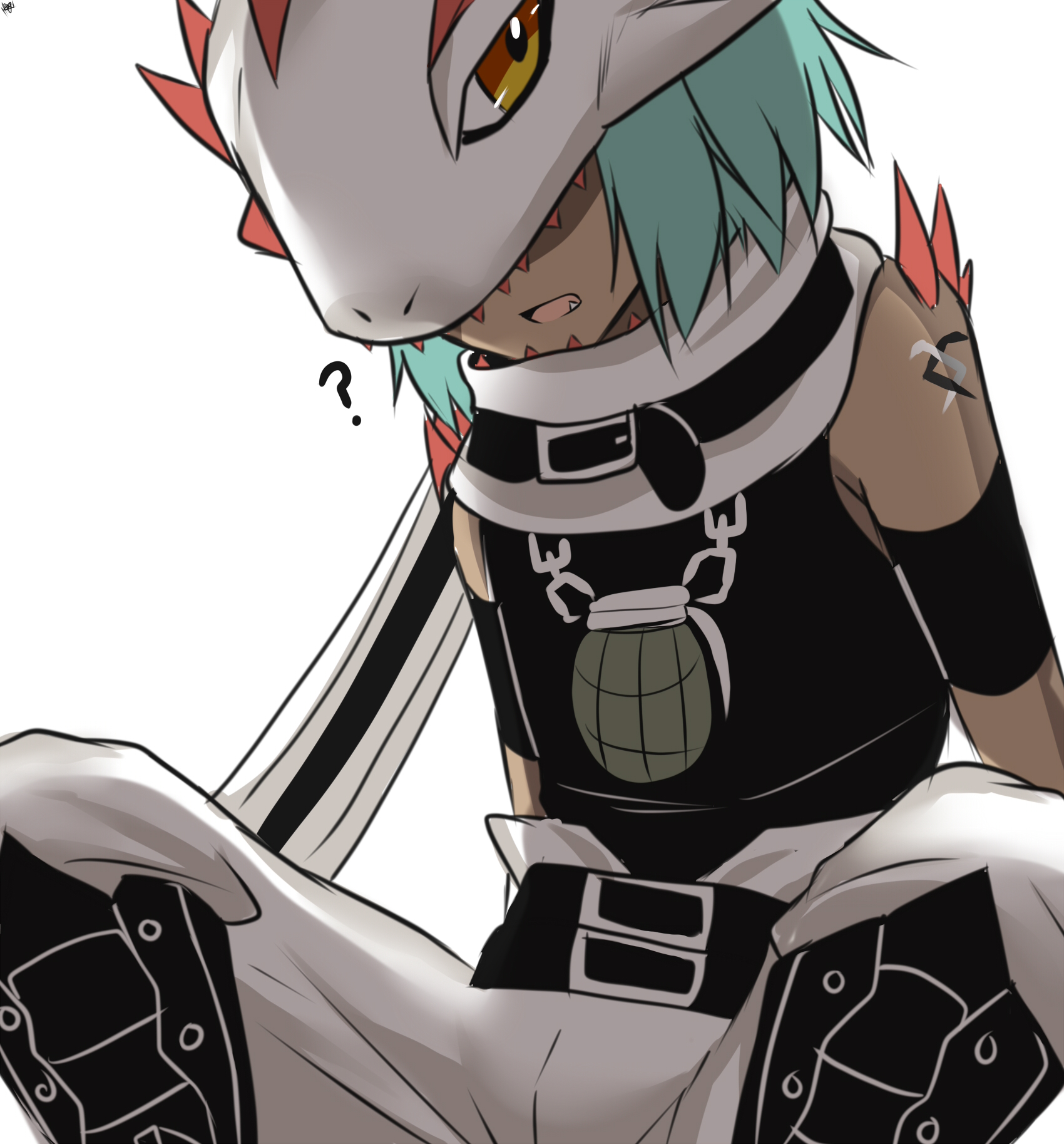 1boy digimon digimon_(creature) explosive grenade highres iguneetmon male_focus solo