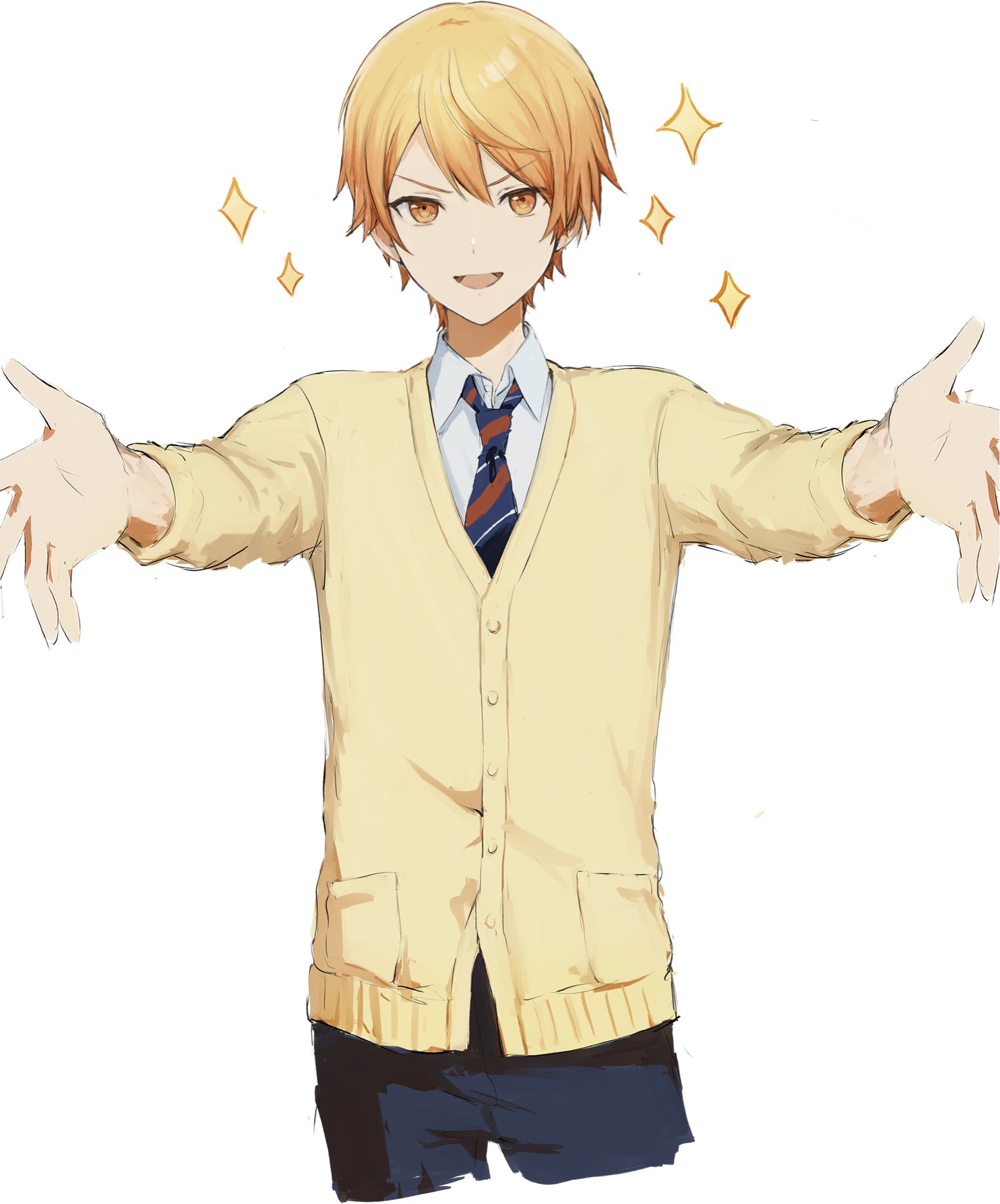 &{ID:8093841 CreatedAt:Tue Jan 03 11:16:04 -0600 2023 Score:0 Width:1702 Height:2048 MD5:c3e7c8c57eb2fb4cea9f15762e6b9d99 Directory:c3/e7 Image:c3e7c8c57eb2fb4cea9f15762e6b9d99.jpg Rating:general Source:https://twitter.com/jdiujl/status/1596832750690258945 Change:1706517643 Owner:danbooru CreatorID:6498 ParentID:0 Sample:1 PreviewHeight:350 PreviewWidth:290 Tags:1boy blonde_hair buttons cardigan collared_shirt diagonal-striped_clothes diagonal-striped_necktie gradient_hair hair_between_eyes highres jdiujl kamiyama_high_school_uniform_(project_sekai) long_sleeves looking_at_viewer multicolored_hair necktie open_mouth orange_eyes orange_hair outstretched_arms pocket project_sekai school_uniform shirt short_hair solo star_(symbol) striped_clothes striped_necktie tenma_tsukasa white_background white_shirt yellow_cardigan Title: HasNotes:false HasComments:false FileURL:https://img2.gelbooru.com/images/c3/e7/c3e7c8c57eb2fb4cea9f15762e6b9d99.jpg PreviewURL:https://gelbooru.com/thumbnails/c3/e7/thumbnail_c3e7c8c57eb2fb4cea9f15762e6b9d99.jpg SampleURL:https://img2.gelbooru.com/samples/c3/e7/sample_c3e7c8c57eb2fb4cea9f15762e6b9d99.jpg SampleHeight:1023 SampleWidth:850 Status:active PostLocked:0 HasChildren:false IsVideo:false DisplayDate:03.01.2023 11:16}