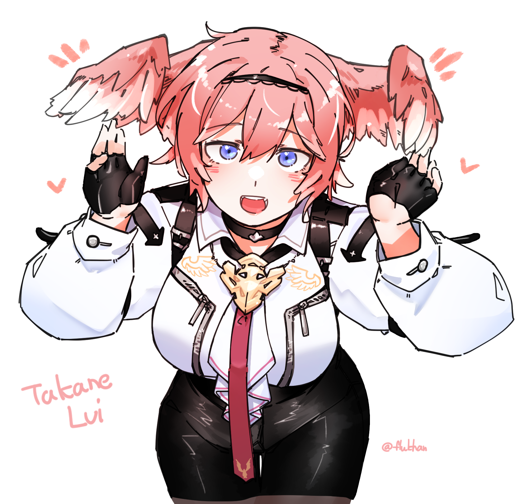1girl black_pantyhose blue_eyes flukhan highres hololive pants pantyhose pink_hair shirt solo takane_lui virtual_youtuber white_background white_shirt