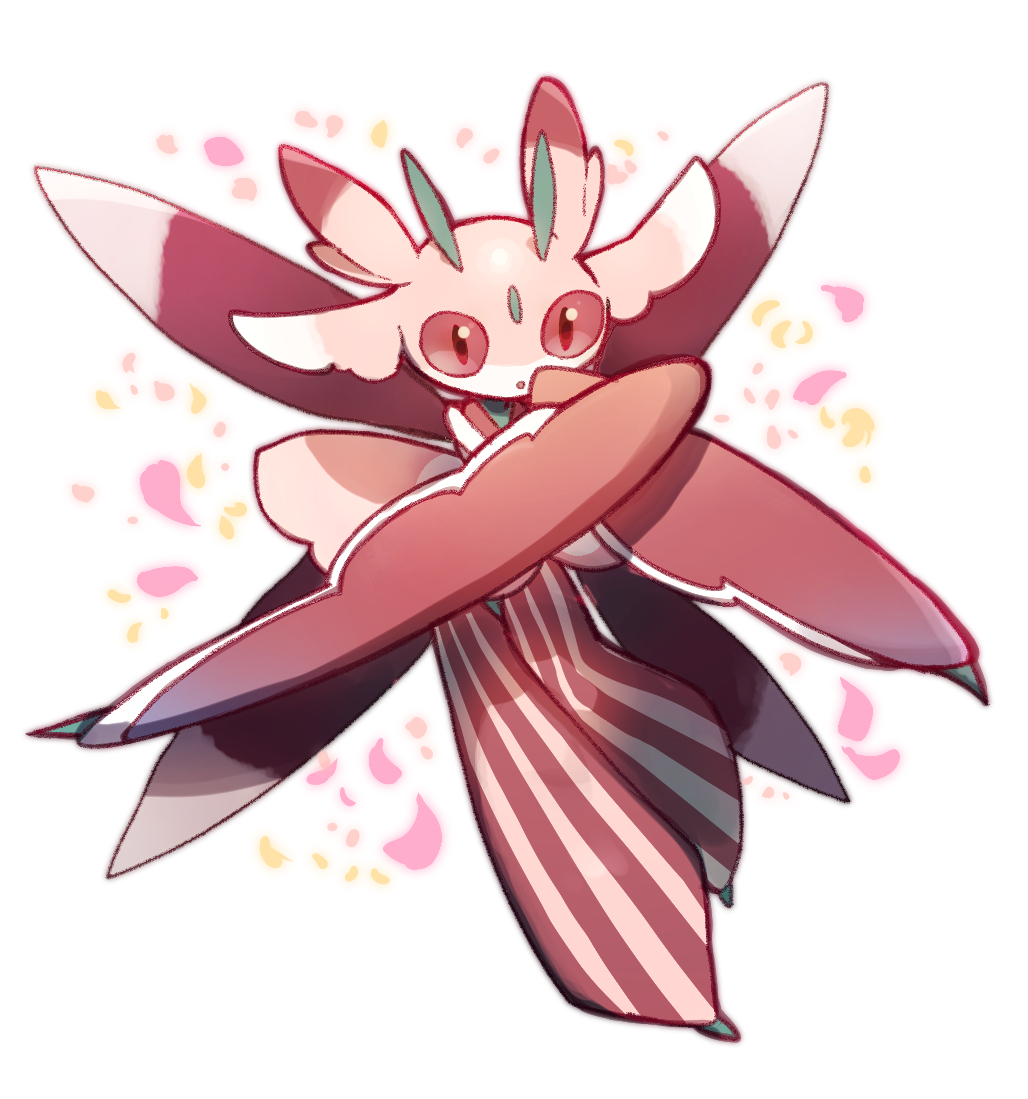 :o cyawa full_body gen_7_pokemon looking_at_viewer lurantis nintendo parted_lips petals pokemon pokemon_(creature) red_eyes simple_background solo striped vertical_stripes white_background