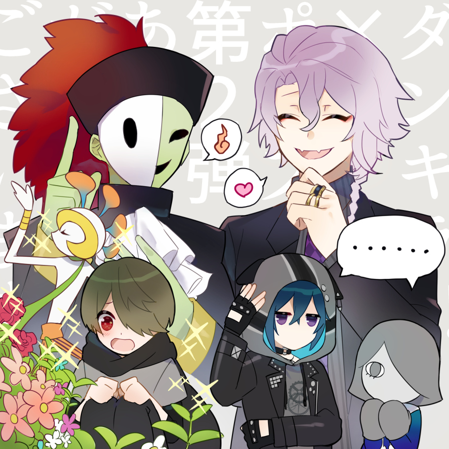 1623 5boys atago_rentaro blue_hair braid character_request closed_eyes dankira!!! halloween halloween_costume janome_shiki kiriyama_oboro long_hair mask multiple_boys purple_eyes short_braid short_hair