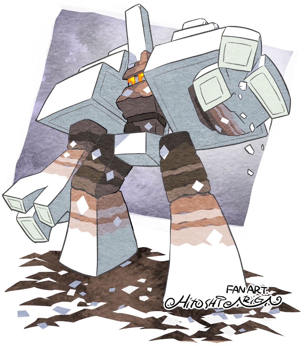 ariga_hitoshi artist_name colored_sclera full_body garganacl golem highres looking_to_the_side nintendo no_humans orange_sclera outstretched_arm pokemon pokemon_(creature) salt solo standing yellow_eyes