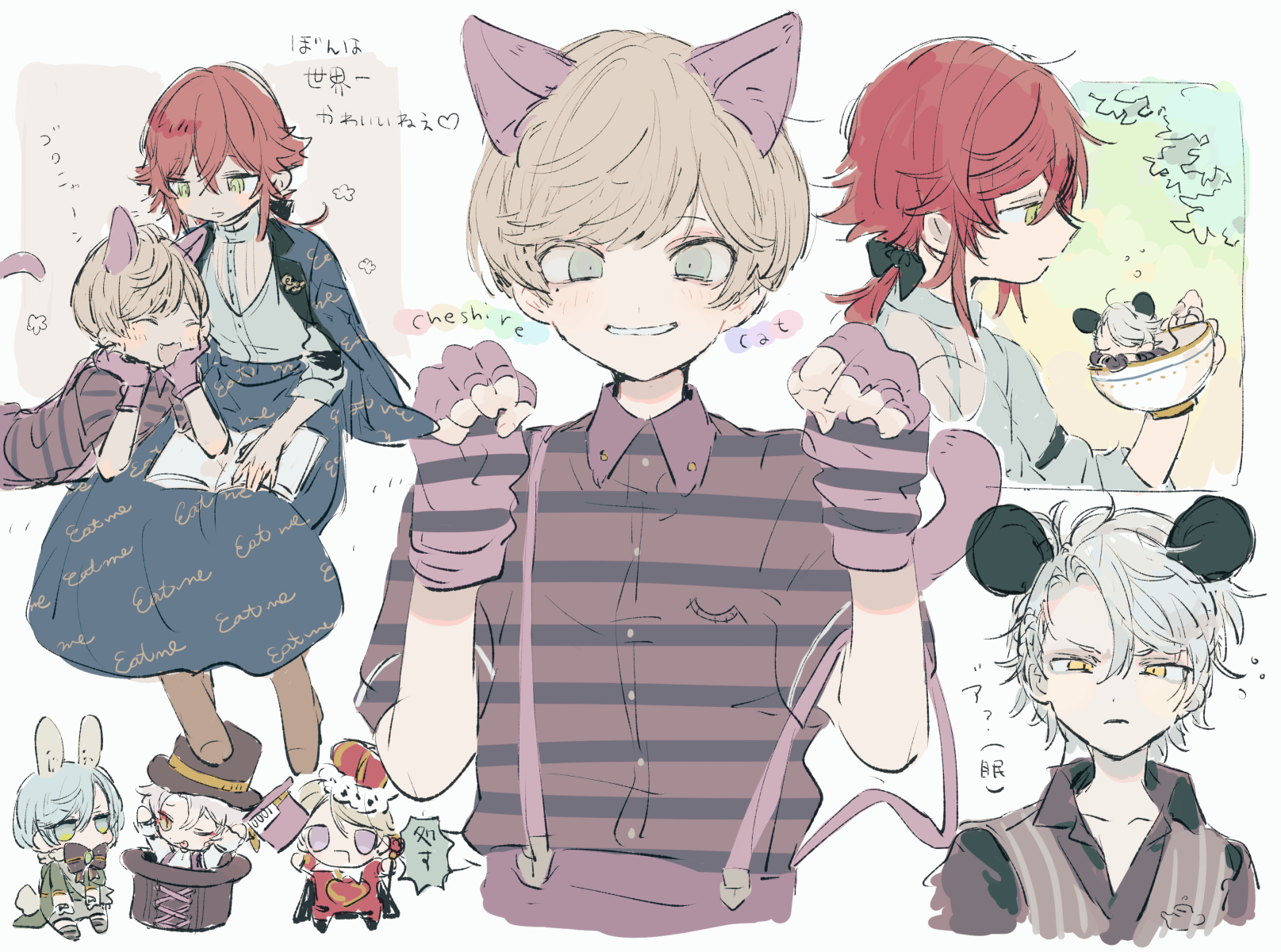 6+boys alice_(alice_in_wonderland) alice_(alice_in_wonderland)_(cosplay) alice's_adventures_in_wonderland animal_ears cat_boy cat_ears cat_tail cheshire_cat_(alice_in_wonderland) cheshire_cat_(alice_in_wonderland)_(cosplay) cosplay crown dankira!!! dormouse_(alice_in_wonderland) dormouse_(alice_in_wonderland)_(cosplay) gekkoin_noel green_eyes habashiri_ginko highres janome_shiki long_hair mad_hatter_(alice_in_wonderland) mad_hatter_(alice_in_wonderland)_(cosplay) male_focus miki_nozomu mole mole_under_eye mouse_boy mouse_ears multiple_boys queen_of_hearts_(alice_in_wonderland) queen_of_hearts_(alice_in_wonderland)_(cosplay) rabbit_boy rabbit_ears red_hair short_hair sketch sneezecoon tail tsubaki_seito wakakusa_yukari white_rabbit_(alice_in_wonderland) white_rabbit_(alice_in_wonderland)_(cosplay)