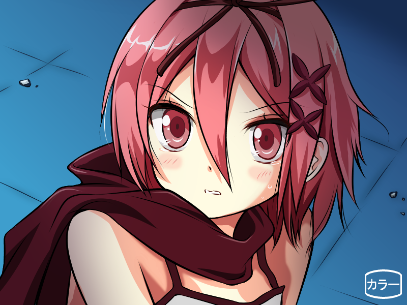 1girl bare_shoulders bishoujo_senshi_sailor_moon bishoujo_senshi_sailor_moon_s close-up frown hair_ornament hair_ribbon kazzha meme ookurikara_(tenka_hyakken) parody pink_eyes pink_hair ribbon sailor_moon_redraw_challenge_(meme) scarf sweatdrop tears tenka_hyakken x_hair_ornament