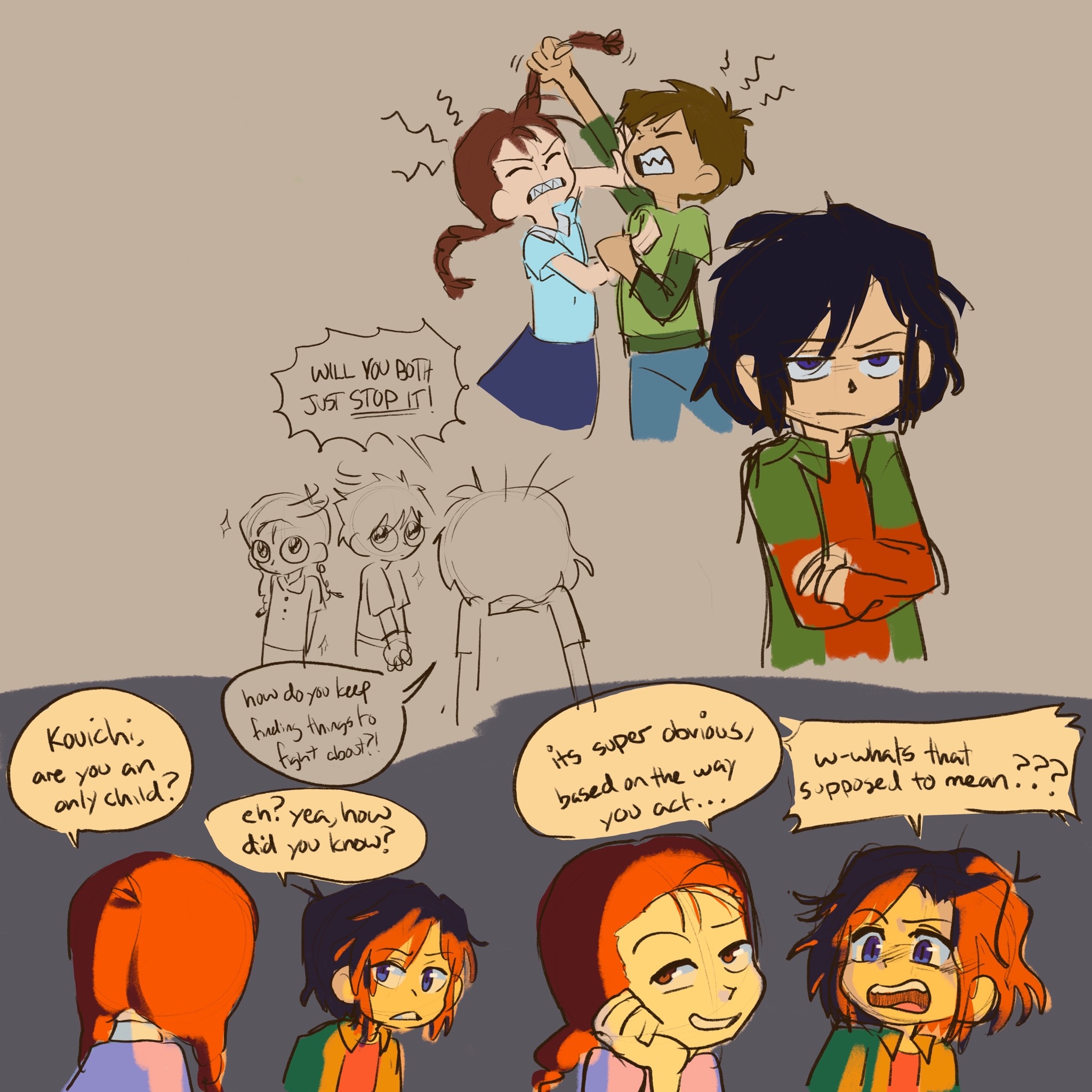 1girl 2boys chiaki_(digimon) digimon digimon_frontier glasses highres long_hair looking_at_another minamoto_kouji multiple_boys short_hair tetsuo_(digimon) twintails