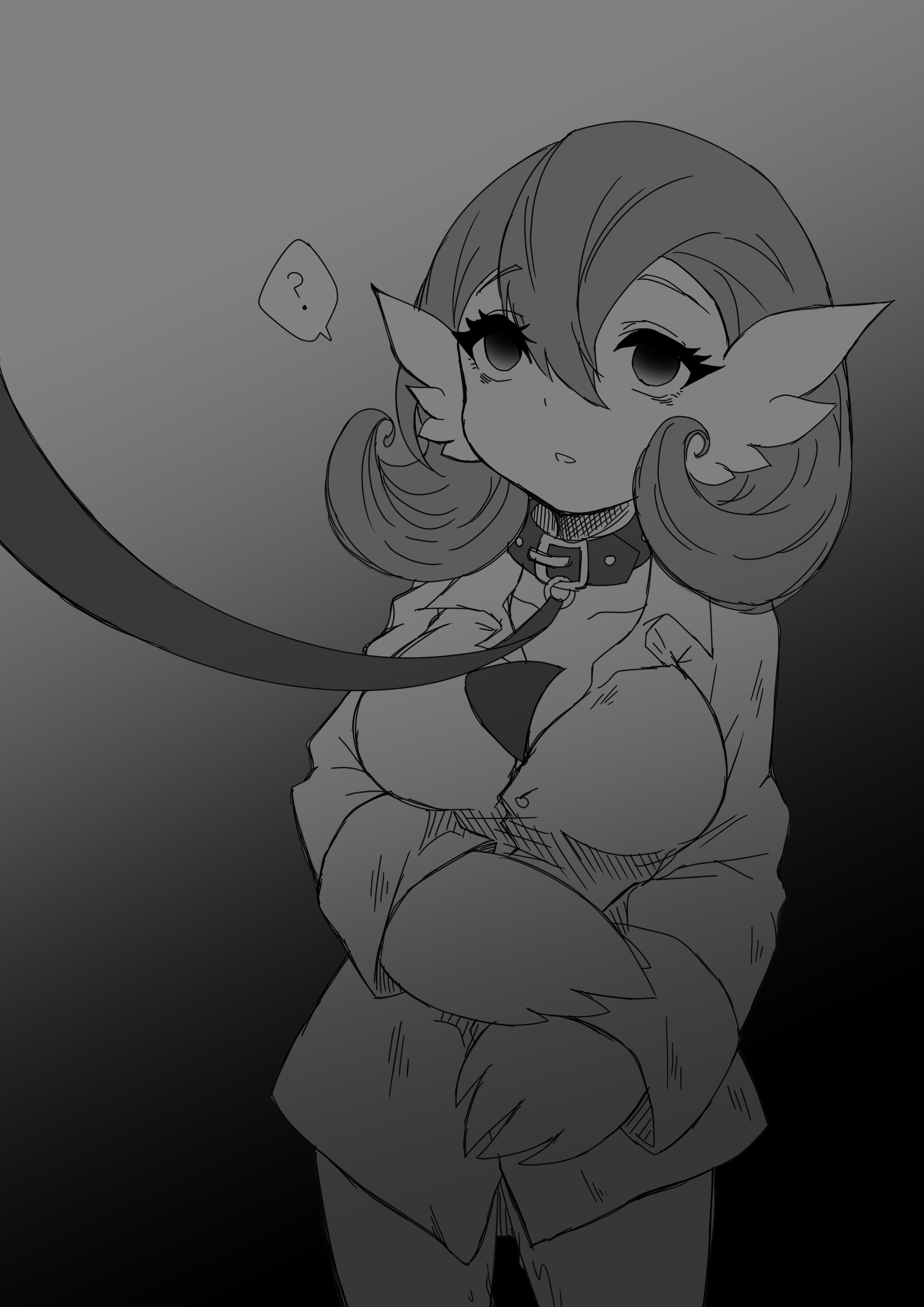 ? absurdres collar dress_shirt edna_faline gardevoir gen_3_pokemon greyscale highres leash monochrome nintendo pokemon shirt speech_bubble