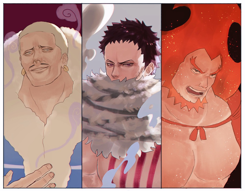 3boys abs beard brothers charlotte_daifuku charlotte_katakuri charlotte_oven chest_tattoo covered_mouth facial_hair forked_eyebrows large_pectorals male_focus multiple_boys muscular muscular_male one_piece pectorals pink_hair sasamiman short_hair siblings stitches tattoo upper_body