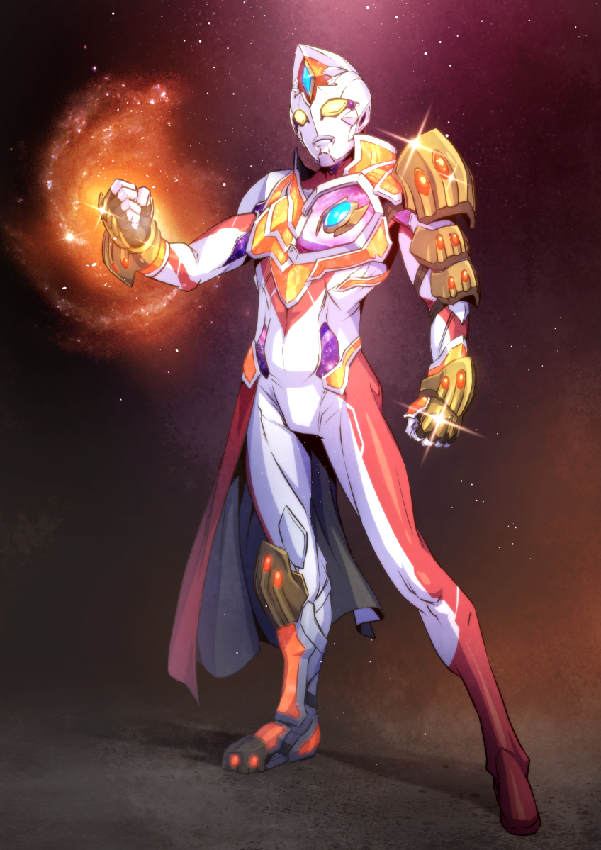 1boy alien armor armored_boots bodysuit boots breastplate clenched_hand clenched_hands coat gauntlets giant gloves glowing glowing_eyes kuroda_asaki no_humans open_clothes open_coat pauldrons red_bodysuit shoulder_armor shoulder_pads solo strong strong_type_(ultraman) tokusatsu ultra_series ultraman_decker ultraman_decker_(series) ultraman_decker_(strong_type)