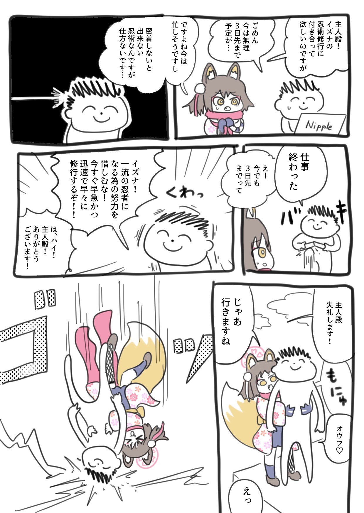 6koma blue_archive comic highres image_sample izuna_(blue_archive) japanese_text notebook sasasahitsuji sensei_(blue_archive) twitter_sample