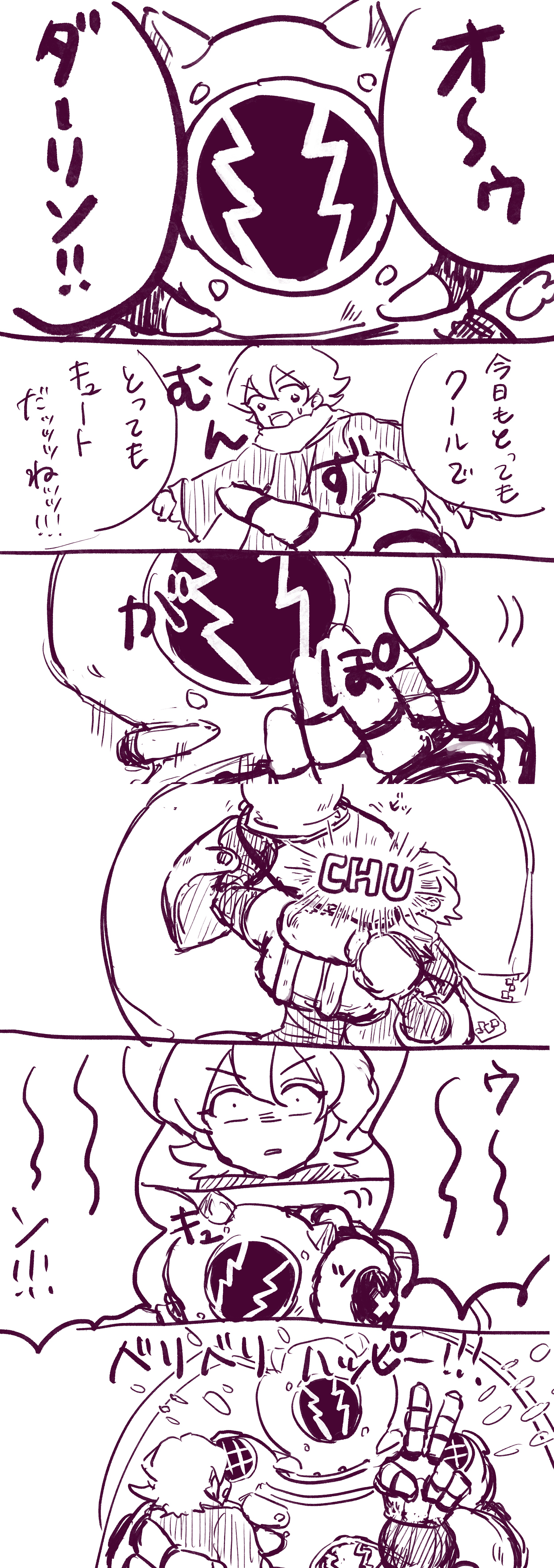 1boy 1girl absurdres amphimon android digimon digimon_ghost_game gynoid hetero higashimitarai_kiyoshiro highres kiss mecha_girl monochrome robot_girl translated white_hair