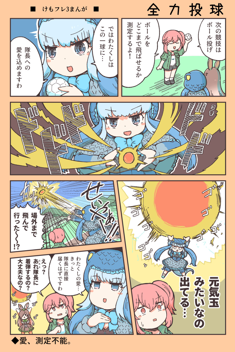 3girls animal_ears blue_hair bow bowtie brown_hair european_hare_(kemono_friends) extra_ears highres hood jacket kemono_friends kemono_friends_3 komodo_dragon_(kemono_friends) long_hair multiple_girls nana_(kemono_friends) numazoko_namazu pantyhose pink_hair rabbit_ears rabbit_girl shirt shoes skirt socks tail