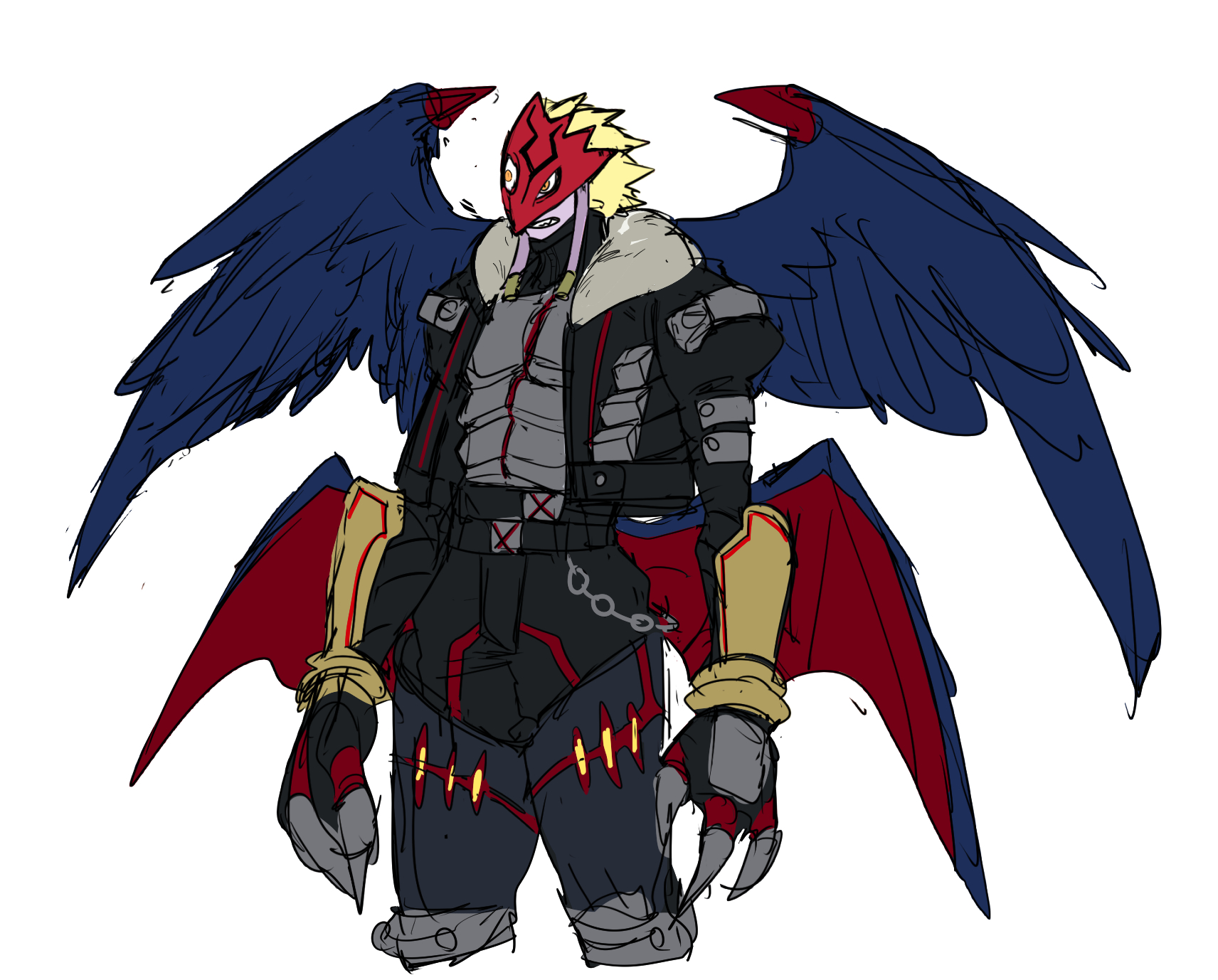 1boy beelzebumon beelzebumon_x-antibody digimon digimon_(creature) highres male_focus mask simple_background solo white_background wings