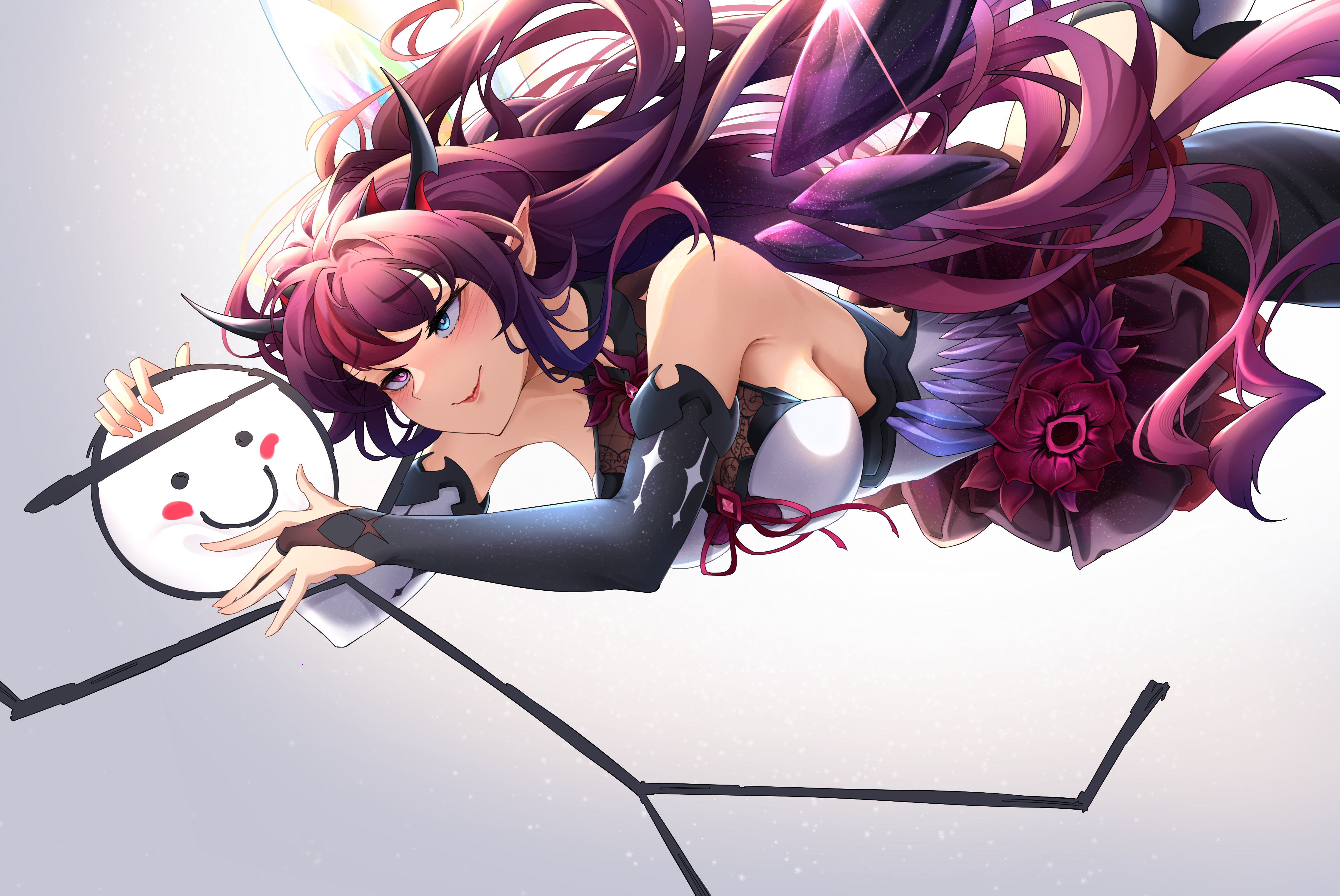 1girl absurdres baseball_cap blue_eyes blush_stickers breasts crystal_wings dress elbow_gloves gloves grey_background guyrys hat heterochromia highres hololive hololive_english horns irys_(hololive) irys_(irys_1.0)_(hololive) large_breasts lips long_hair ootoii pink_eyes pointy_ears red_hair simple_background stick_figure virtual_youtuber wings