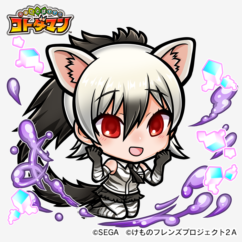 1girl aardwolf_(kemono_friends) animal_ears extra_ears game_cg grey_hair kemono_friends long_hair necktie official_art red_eyes simple_background solo tail