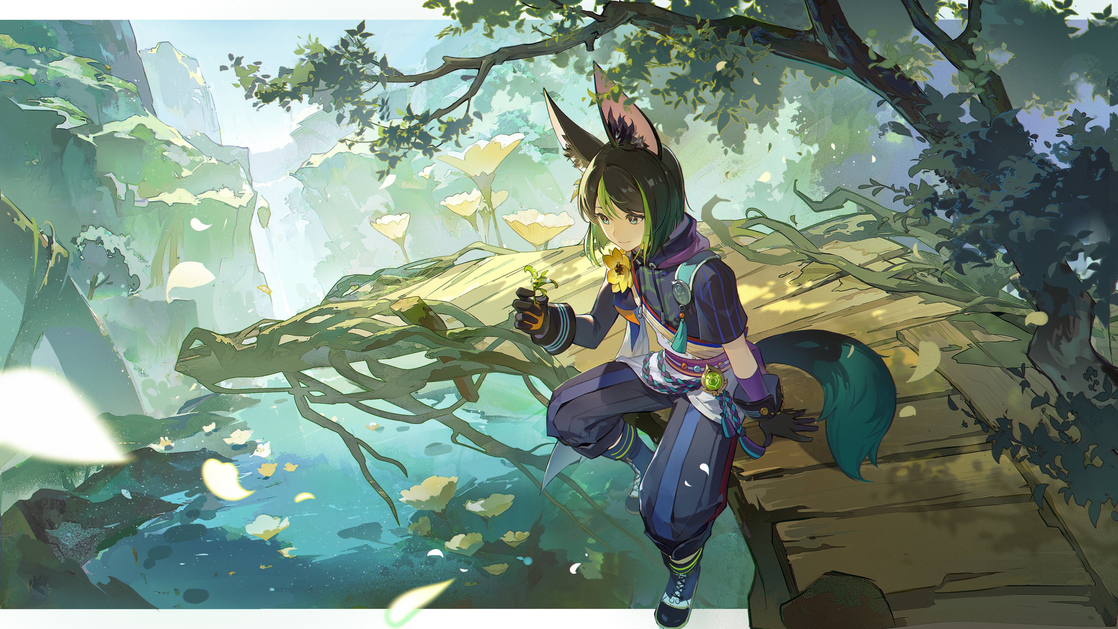 &{ID:8253853 CreatedAt:Sun Feb 19 07:15:45 -0600 2023 Score:4 Width:3840 Height:2160 MD5:fea88c7ca8fbb3fe319fdd6c45c7cbe6 Directory:fe/a8 Image:fea88c7ca8fbb3fe319fdd6c45c7cbe6.jpg Rating:general Source:https://twitter.com/Yandee233/status/1627128379337228289 Change:1678849851 Owner:danbooru CreatorID:6498 ParentID:0 Sample:1 PreviewHeight:196 PreviewWidth:350 Tags:1boy absurdres animal_ear_fluff animal_ears arm_support asymmetrical_sleeves black_gloves black_hair black_pants blue_sky blunt_ends branch bridge brown_eyes brown_gloves capri_pants closed_mouth commentary day drawstring earrings english_commentary flower fox_boy fox_ears fox_tail genshin_impact gloves green_eyes green_hair hair_between_eyes hand_up highres hood hood_down hoodie jewelry letterboxed long_sleeves male_focus medal mountain multicolored_clothes multicolored_eyes multicolored_hair outdoors pants petals plant purple_sash rope sash short_hair short_sleeves sidelocks single_earring sitting sky smile solo tail tassel tighnari_(genshin_impact) tree two-tone_gloves two-tone_hair uneven_sleeves vines vision_(genshin_impact) water wooden_bridge wrist_cuffs yandee233 yellow_flower Title: HasNotes:false HasComments:false FileURL:https://img2.gelbooru.com/images/fe/a8/fea88c7ca8fbb3fe319fdd6c45c7cbe6.jpg PreviewURL:https://gelbooru.com/thumbnails/fe/a8/thumbnail_fea88c7ca8fbb3fe319fdd6c45c7cbe6.jpg SampleURL:https://img2.gelbooru.com/samples/fe/a8/sample_fea88c7ca8fbb3fe319fdd6c45c7cbe6.jpg SampleHeight:478 SampleWidth:850 Status:active PostLocked:0 HasChildren:false IsVideo:false DisplayDate:19.02.2023 07:15}