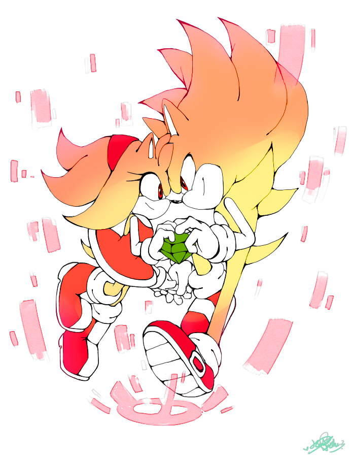 1boy 1girl amy_rose animal_nose boots chaos_emerald closed_mouth dress eye_contact furry furry_female furry_male gloves hairband holding_hands looking_at_another red_dress red_footwear red_hairband shoes smile sonic_(series) sonic_the_hedgehog super_sonic white_gloves ziver