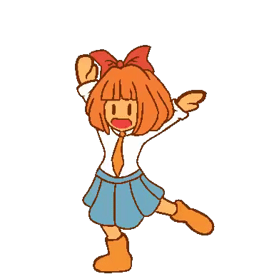 1girl animated animated_gif blue_skirt bow dancing drawfag hair_bow iosys long_sleeves lowres medium_hair mymy_schoppenboer necktie non-web_source ongezellig orange_hair orange_necktie overdrive_(iosys) red_bow shirt shirt_tucked_in skirt solo transparent_background white_shirt