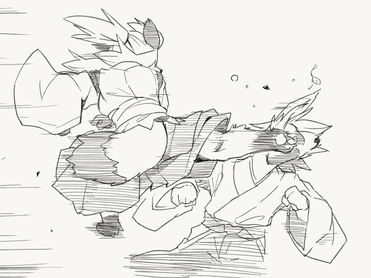 2girls animal_ears animal_nose barefoot body_fur breasts clothing_cutout cowboy_shot feet female_focus flat_chest flying_kick fox_ears fox_girl from_behind full_body furry furry_female greyscale hair_tie hakama hakama_skirt hip_vent in_the_face japanese_clothes jumping kame_(3t) kicking kimono kneepits long_sleeves miko monochrome motion_lines multiple_girls original pawpads raccoon_ears raccoon_girl raccoon_tail rin-chan_(kame_(3t)) simple_background sketch skirt small_breasts snout standing tail topknot white_background wide_sleeves yhun-chan_(kame_(3t))