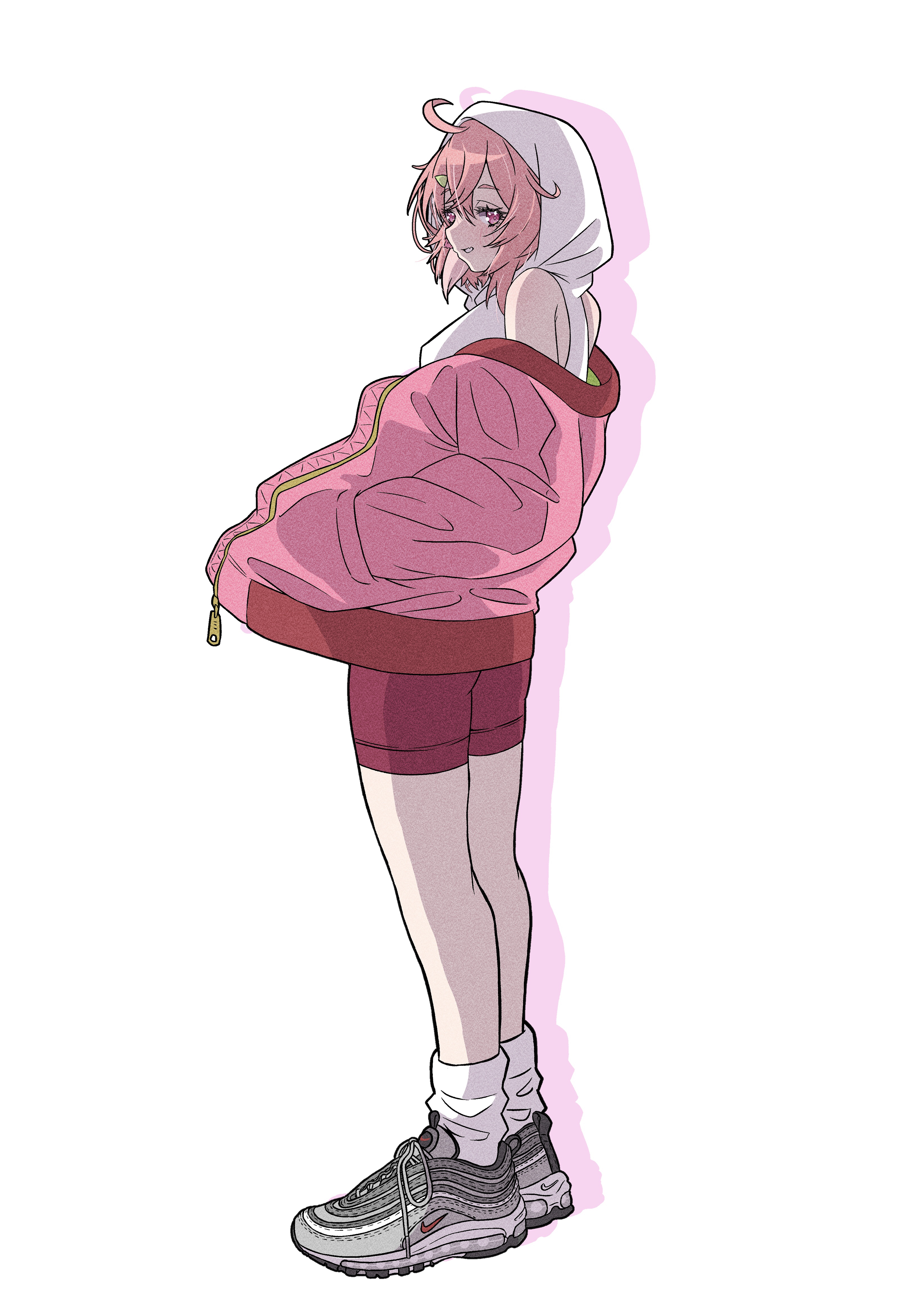 1girl absurdres highres lozi nijisanji off-shoulder_jacket off_shoulder pink_hair sasaki_saku solo standing virtual_youtuber