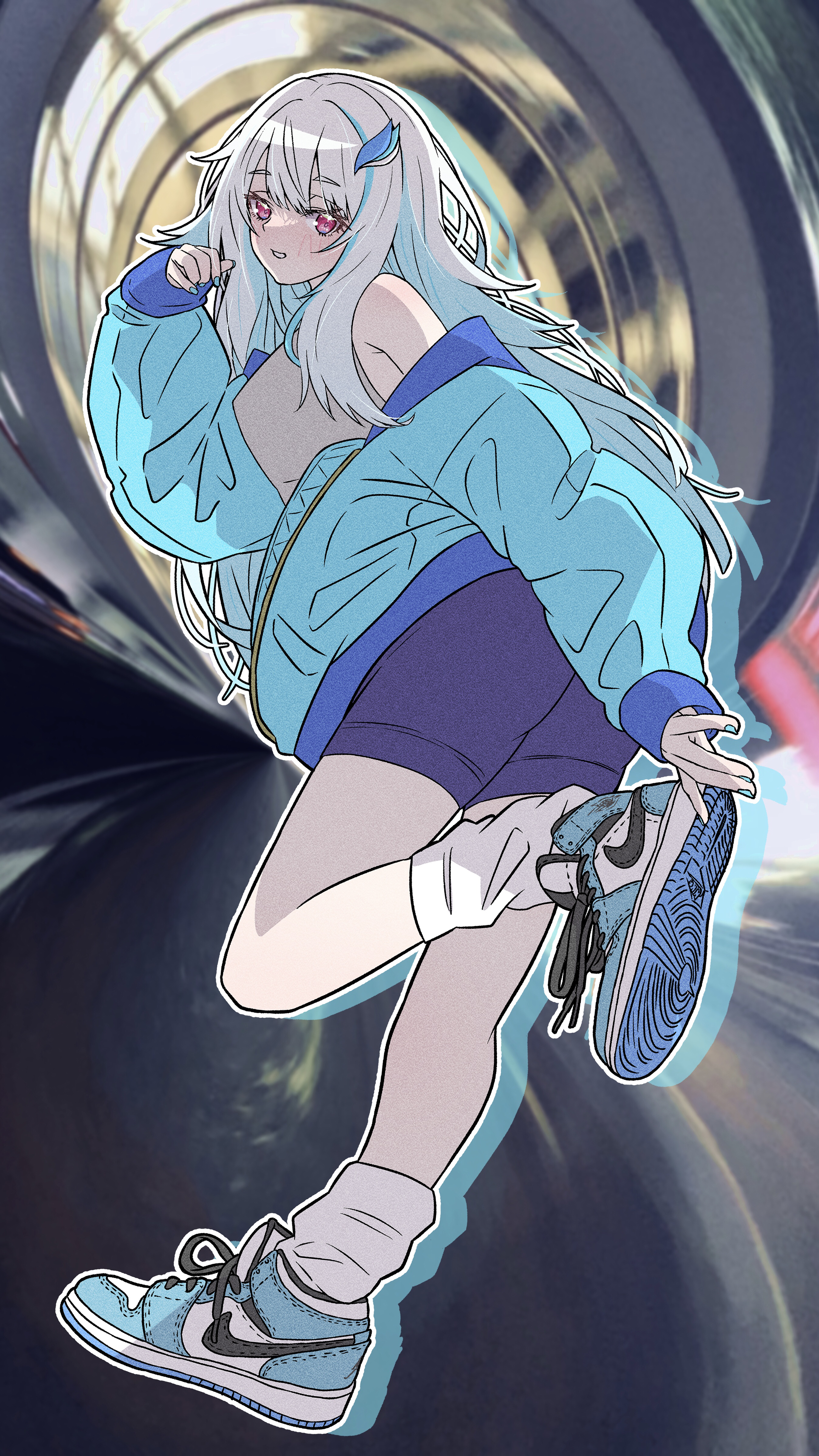 1girl absurdres blue_jacket highres jacket lize_helesta lozi nijisanji solo virtual_youtuber white_hair