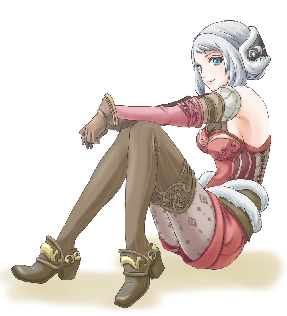 1girl arciela_v_adoulin bare_shoulders blue_eyes blush breasts brown_gloves brown_shoes brown_thighhighs closed_mouth detached_sleeves earmuffs final_fantasy final_fantasy_xi fur_trim gloves grey_hair grey_pantyhose hume jumpsuit layered_legwear layered_sleeves long_sleeves medium_breasts no_bra outstretched_arms pantyhose pink_sleeves print_legwear print_pantyhose red_jumpsuit sakutsuki shoes short_hair short_jumpsuit sideboob sitting smile solo striped_clothes striped_thighhighs thighhighs vertical-striped_clothes vertical-striped_thighhighs