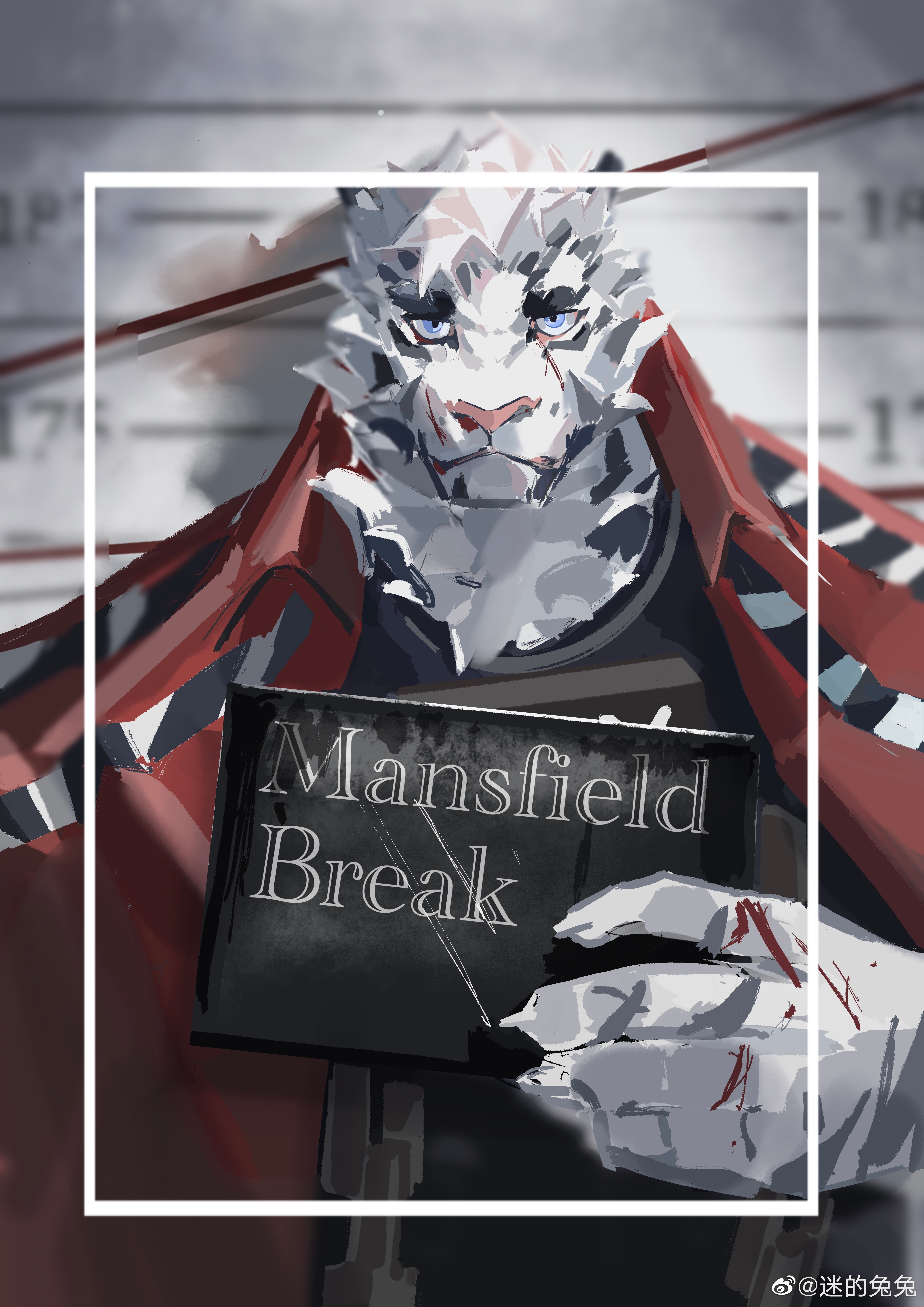 1boy absurdres animal_ears arknights artist_request blood chain coat coat_on_shoulders cuts furry furry_male highres holding holding_sign injury large_hands looking_at_viewer male_focus mountain_(arknights) official_alternate_costume prison_clothes prisoner short_hair sideburns sign solo tiger_boy tiger_ears upper_body white_fur