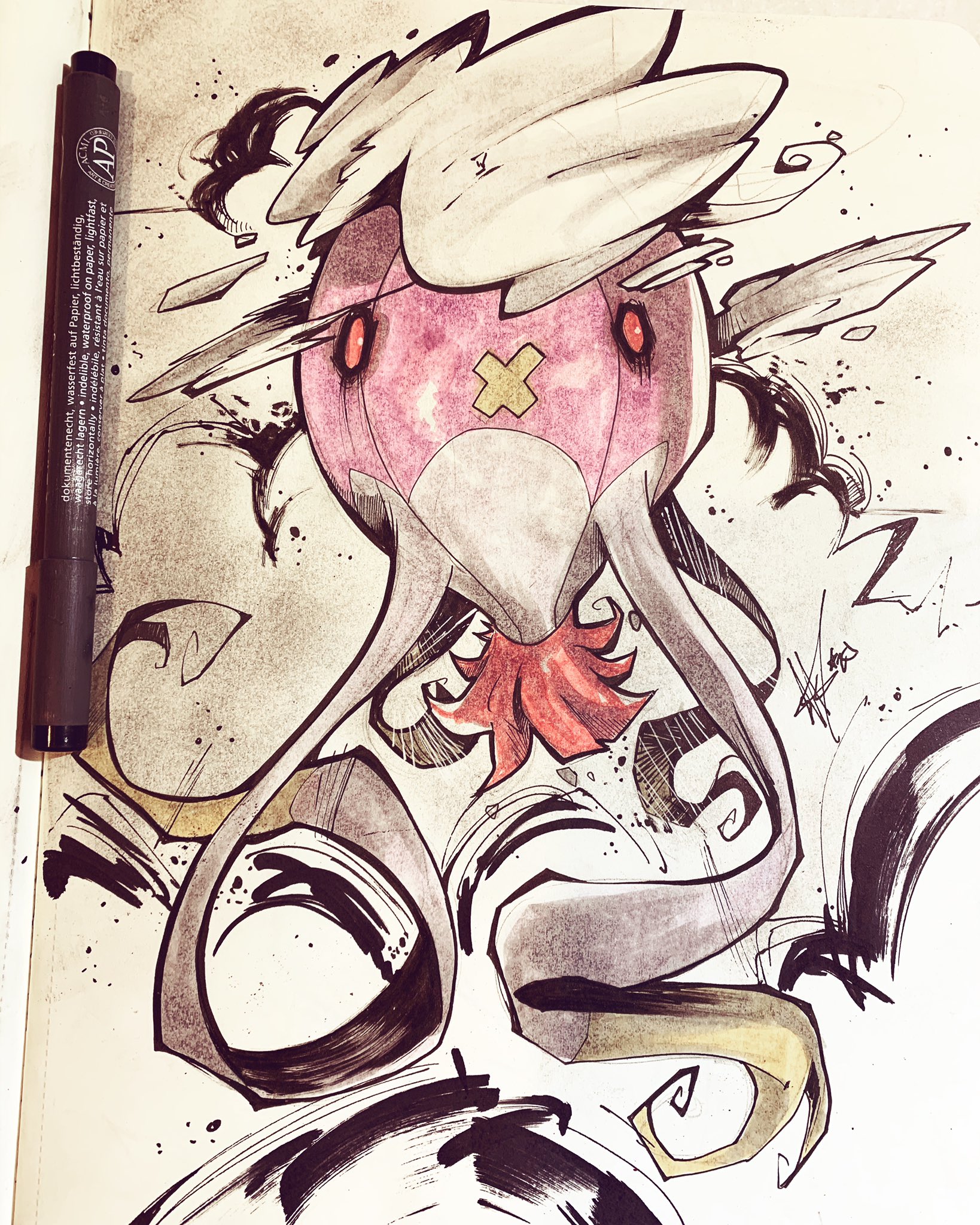 balloon drifblim gen_4_pokemon highres nintendo pokemon pokemon_(creature) red_eyes solo traditional_media