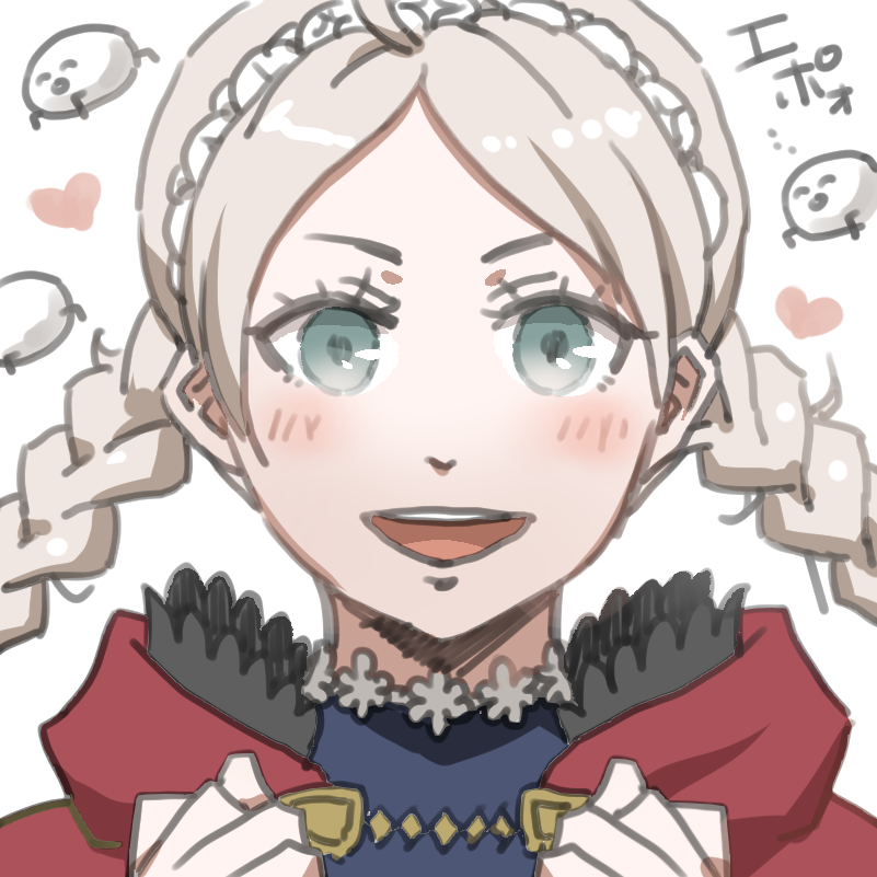 1girl ahoge blue_eyes braid buttons fire_emblem fire_emblem_fates futatsuki_(perfect_lovers) hairband hood hood_down low_twin_braids nina_(fire_emblem) nintendo open_mouth parted_bangs portrait red_hood solo teeth turtleneck twin_braids upper_teeth_only white_hair white_hairband