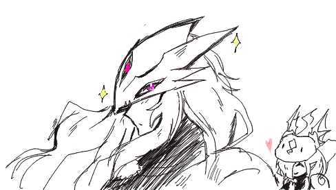2girls beelstarmon closed_eyes digimon digimon_(creature) heart looking_at_viewer lowres mask mervamon multiple_girls red_eyes