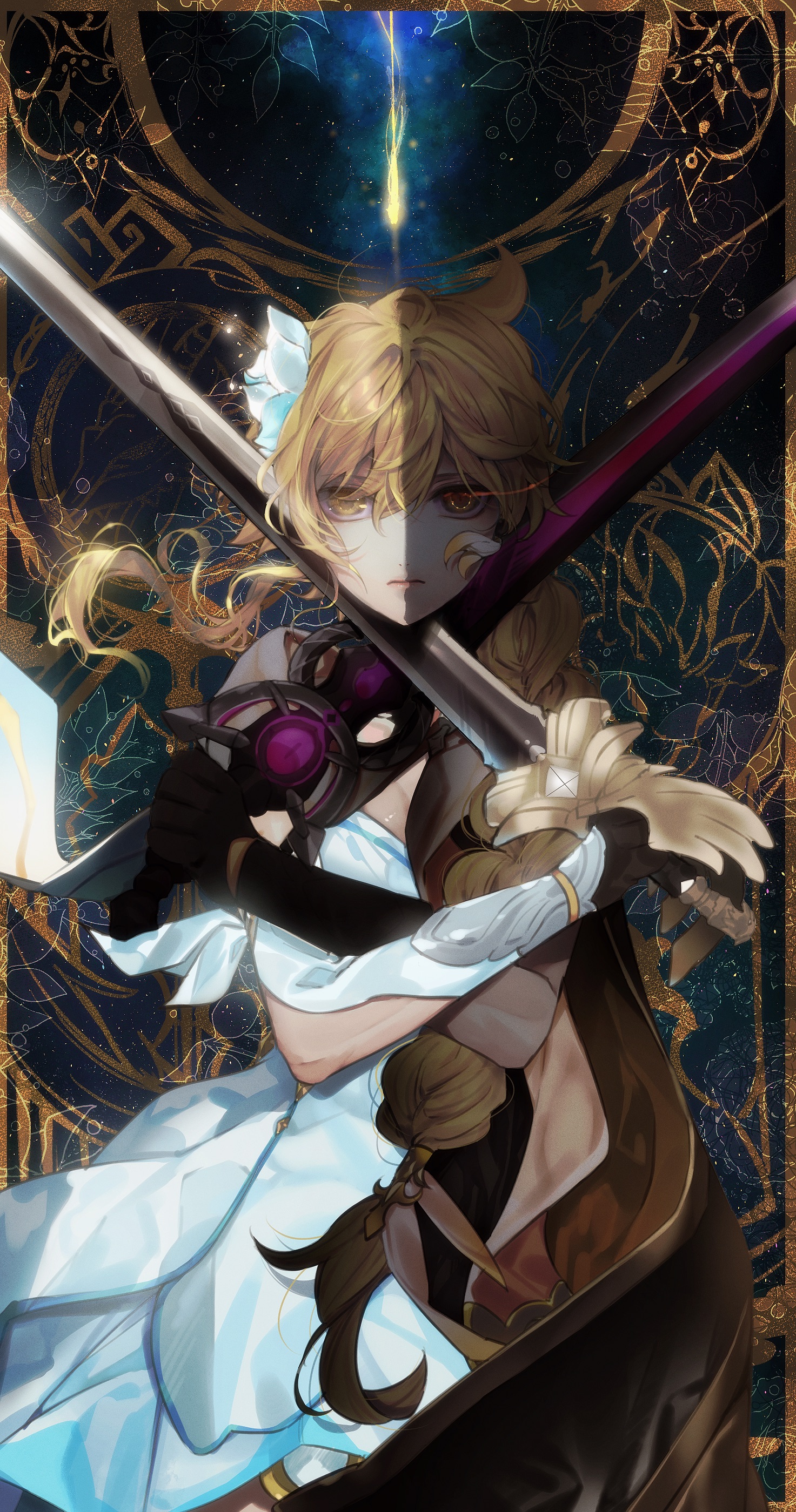 &{ID:8368994 CreatedAt:Sun Mar 26 02:30:44 -0500 2023 Score:7 Width:1473 Height:2800 MD5:c0dc60620b5ee3e932b748eff8de7990 Directory:c0/dc Image:c0dc60620b5ee3e932b748eff8de7990.jpg Rating:general Source:https://www.pixiv.net/artworks/88323611 Change:1680323058 Owner:danbooru CreatorID:6498 ParentID:0 Sample:1 PreviewHeight:350 PreviewWidth:184 Tags:1boy 1girl :| absurdres aether_(genshin_impact) black_gloves black_pants black_vs_white blade_to_throat blonde_hair braid brother_and_sister brown_cape cape closed_mouth cowboy_shot crossed_swords detached_sleeves dress dual_wielding earrings eye_trail favonius_sword_(genshin_impact) festering_desire_(genshin_impact) flower framed genshin_impact gloves hair_between_eyes hair_flower hair_ornament hair_over_shoulder highres holding holding_sword holding_weapon jewelry light_trail long_hair looking_at_viewer lumine_(genshin_impact) matching_hair/eyes outside_border pants serious shooting_star short_hair_with_long_locks siblings single_braid sky sleeveless sleeveless_dress split_theme star_(sky) starry_sky straight-on sword tassel tassel_earrings twins vambraces weapon white_dress white_flower white_sleeves x_arms yellow_eyes zassyoku_dd Title: HasNotes:false HasComments:false FileURL:https://img2.gelbooru.com/images/c0/dc/c0dc60620b5ee3e932b748eff8de7990.jpg PreviewURL:https://gelbooru.com/thumbnails/c0/dc/thumbnail_c0dc60620b5ee3e932b748eff8de7990.jpg SampleURL:https://img2.gelbooru.com/samples/c0/dc/sample_c0dc60620b5ee3e932b748eff8de7990.jpg SampleHeight:1616 SampleWidth:850 Status:active PostLocked:0 HasChildren:false IsVideo:false DisplayDate:26.03.2023 02:30}
