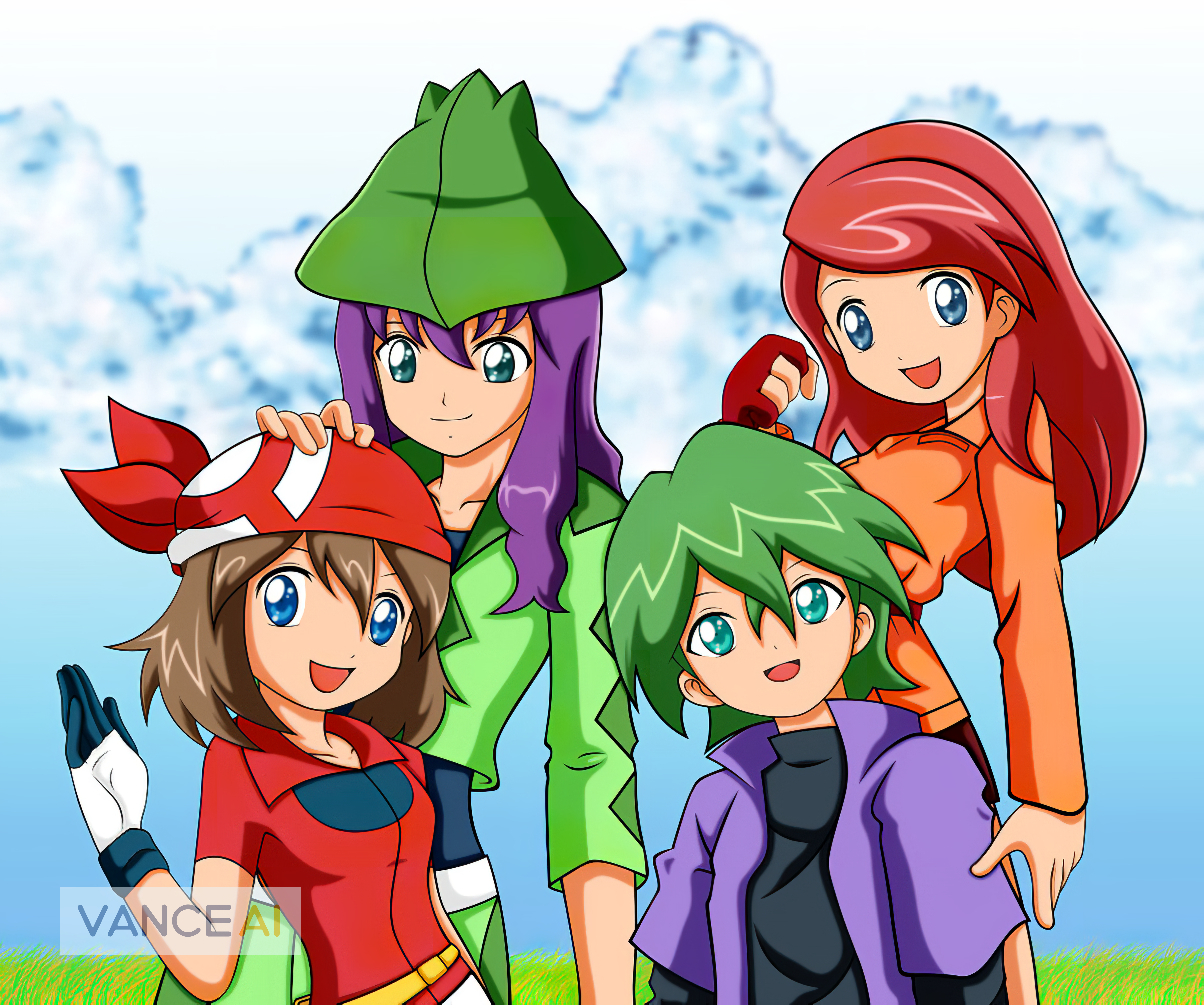 absurdres drew_(pokemon) hand_on_another's_head highres may_(pokemon) nintendo non-web_source pokemon pokemon_(anime) tagme