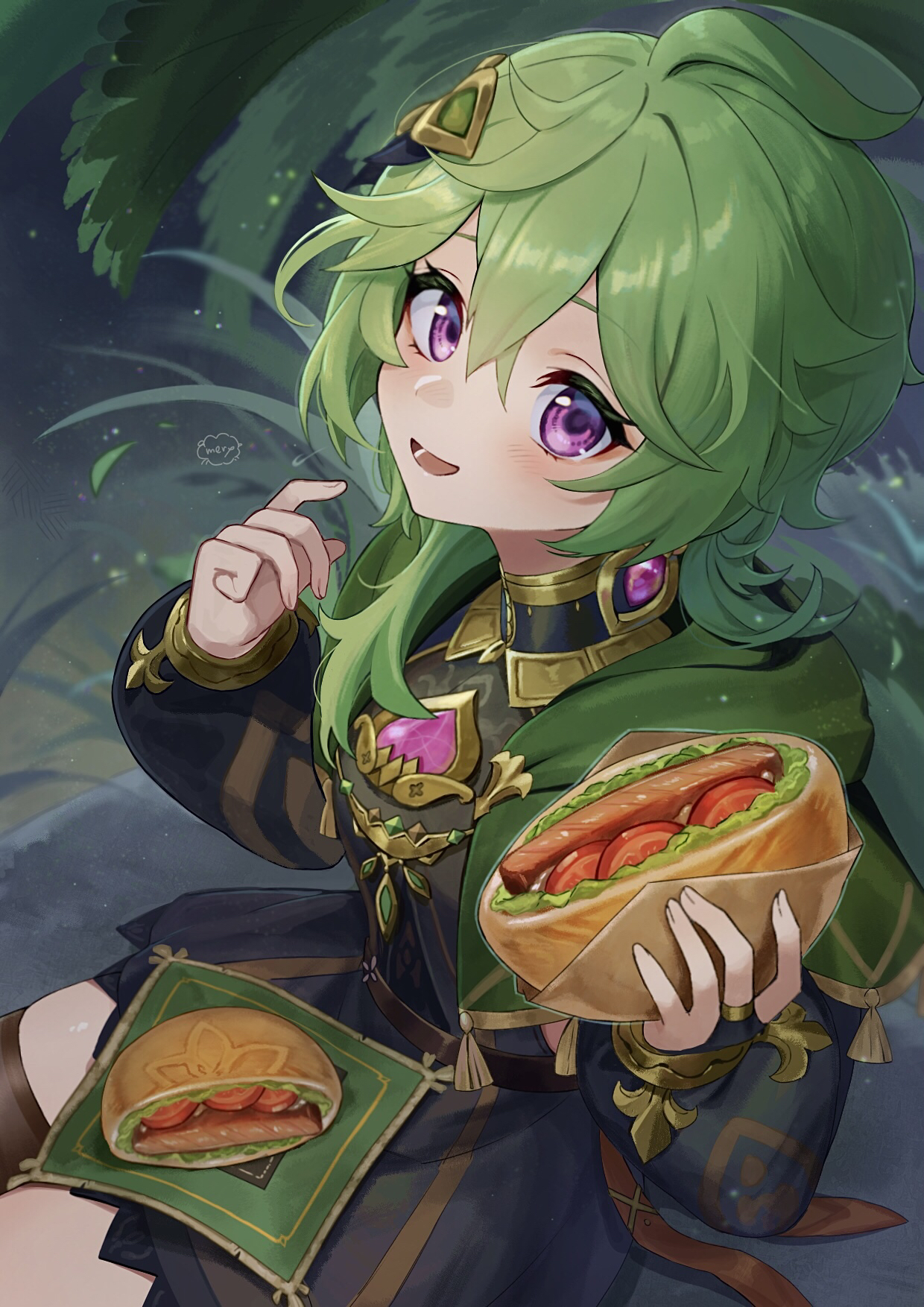 &{ID:8395672 CreatedAt:Sun Apr 02 13:31:04 -0500 2023 Score:11 Width:1240 Height:1754 MD5:18d2f1108cbfb5f39ebfa27f614cd9a7 Directory:18/d2 Image:18d2f1108cbfb5f39ebfa27f614cd9a7.jpg Rating:general Source:https://www.pixiv.net/artworks/106636757 Change:1680460264 Owner:danbooru CreatorID:6498 ParentID:0 Sample:1 PreviewHeight:350 PreviewWidth:247 Tags:1girl black_dress brown_thighhighs capelet collei_(genshin_impact) commentary_request dress earrings food genshin_impact green_capelet green_hair hair_ornament hand_up high_collar highres hitsujino_mery holding holding_food jewelry long_sleeves looking_at_viewer open_mouth puffy_long_sleeves puffy_sleeves purple_eyes short_dress single_earring sitting smile solo thighhighs zettai_ryouiki Title: HasNotes:false HasComments:false FileURL:https://img2.gelbooru.com/images/18/d2/18d2f1108cbfb5f39ebfa27f614cd9a7.jpg PreviewURL:https://gelbooru.com/thumbnails/18/d2/thumbnail_18d2f1108cbfb5f39ebfa27f614cd9a7.jpg SampleURL:https://img2.gelbooru.com/samples/18/d2/sample_18d2f1108cbfb5f39ebfa27f614cd9a7.jpg SampleHeight:1202 SampleWidth:850 Status:active PostLocked:0 HasChildren:false IsVideo:false DisplayDate:02.04.2023 13:31}