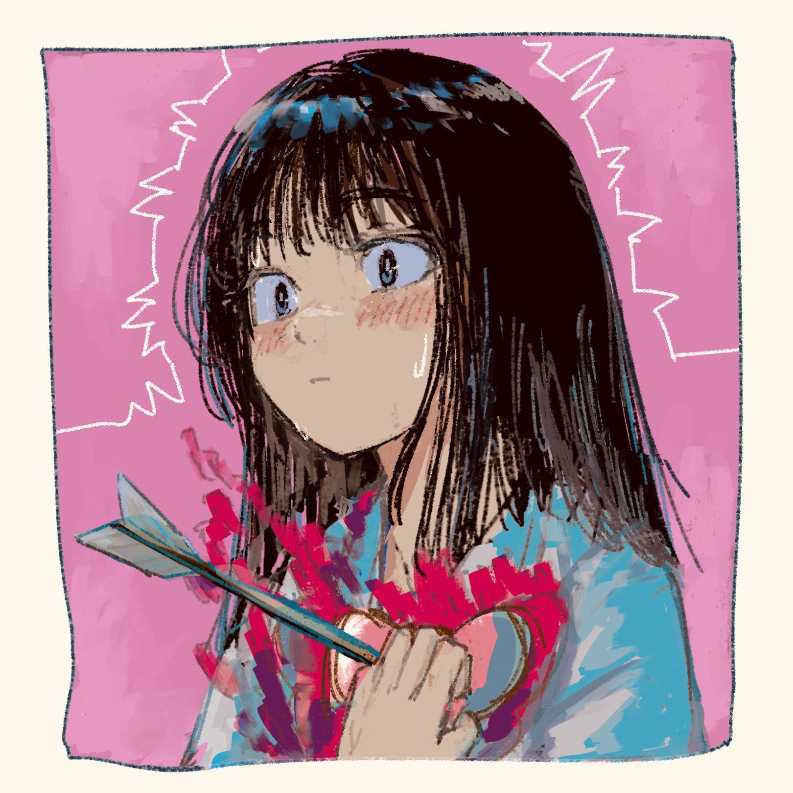 1girl arrow_through_heart bakui02 black_hair blush closed_mouth highres original solo