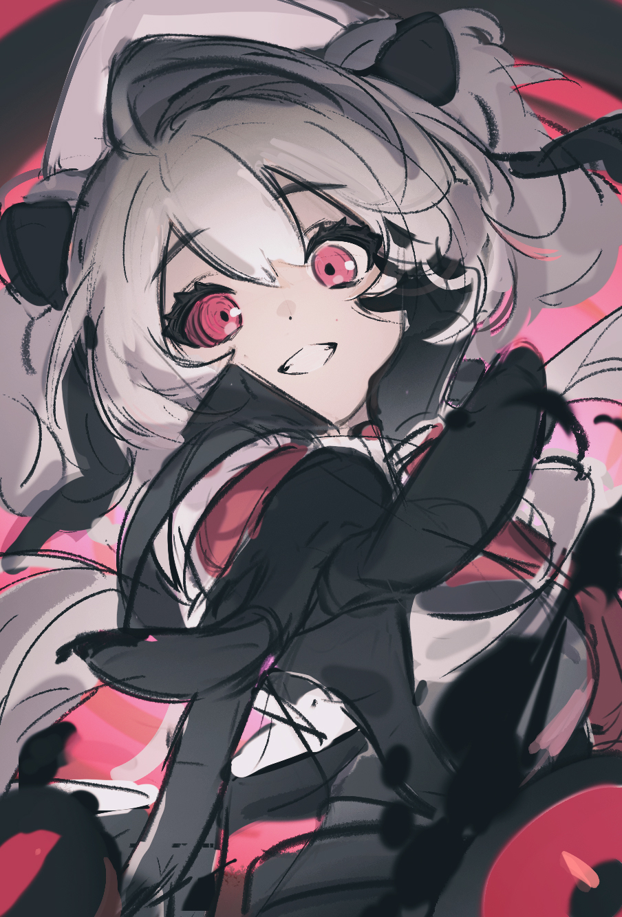 1girl alchemy_stars black_gloves eicy_(alchemy_stars) gloves highres reaching reaching_towards_viewer red_eyes sketch solo white_hair zhiyan_li