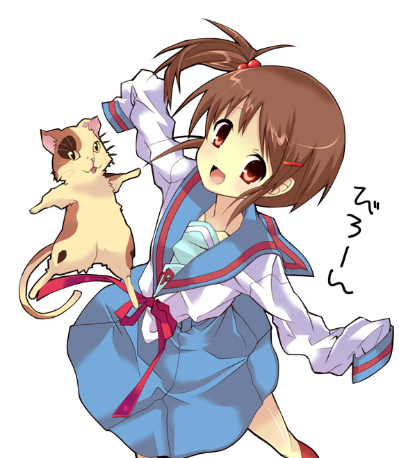 00s cat kyon_no_imouto oversized_clothes ponytail school_uniform serafuku side_ponytail solo suzumiya_haruhi_no_yuuutsu translation_request yuutarou